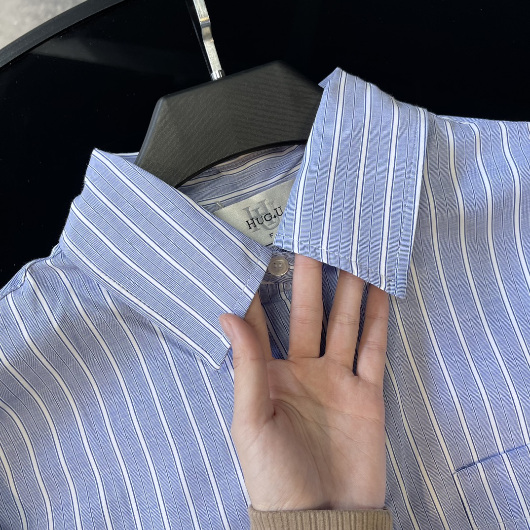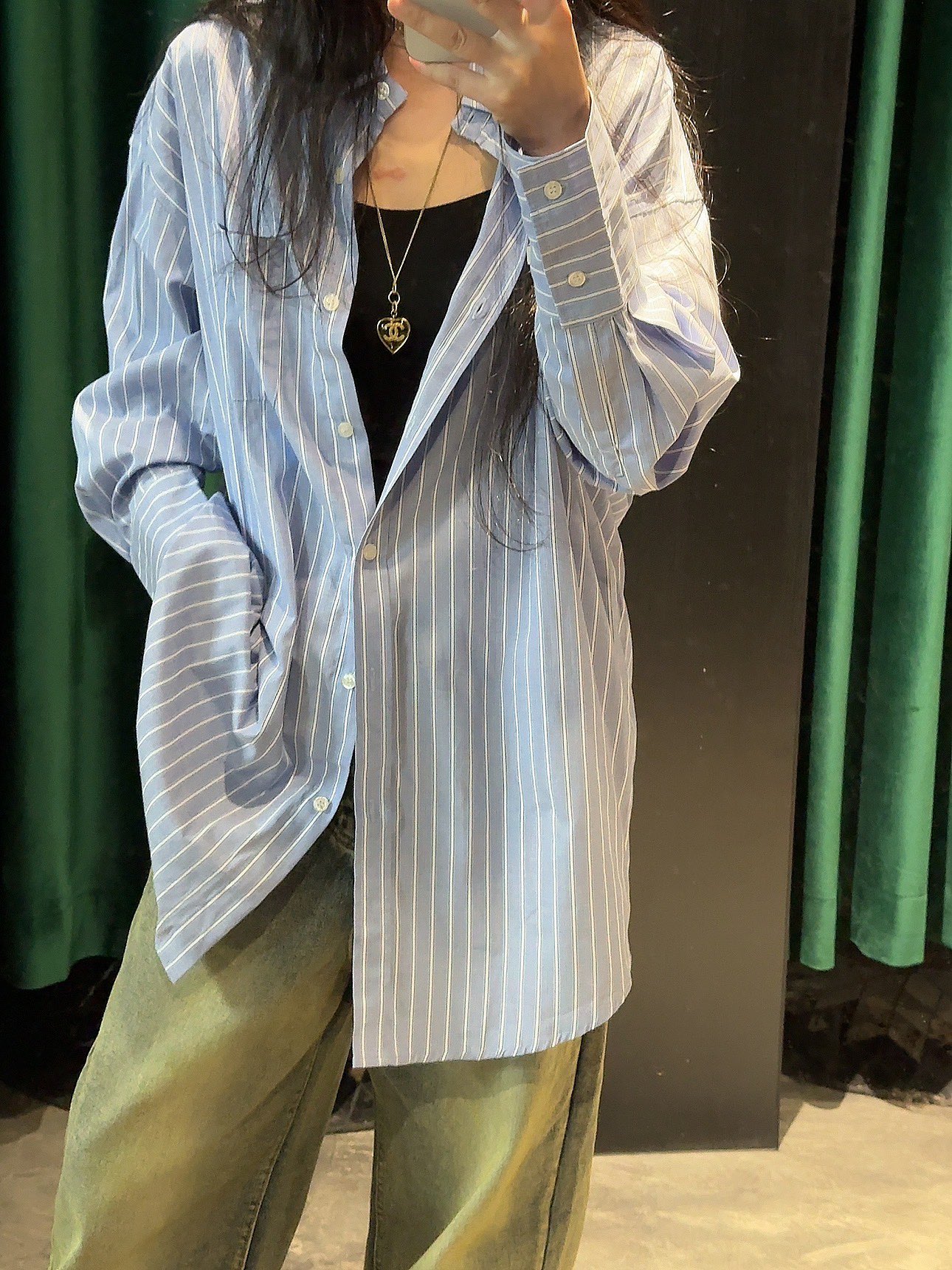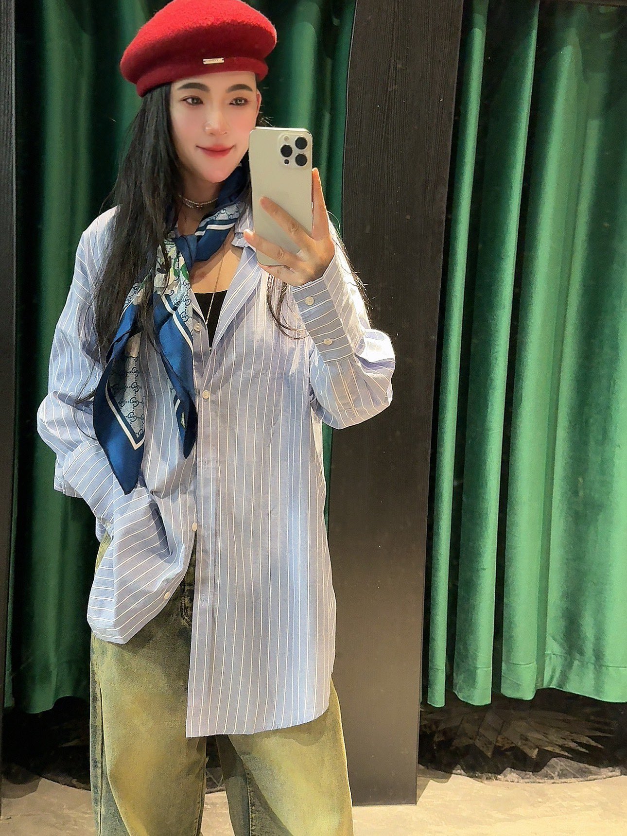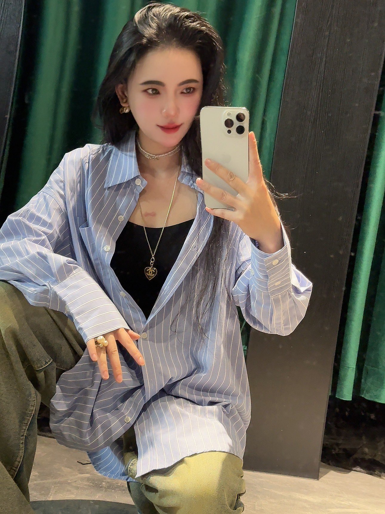宽松慵懒风休闲竖条纹衬衫,蓝色条纹衬衫就是初秋的本命战衣!韩里韩气的蓝色条纹衬衫!干净的蓝白条纹,既不单调也不会太过张扬,宽松舒适的廓形不挑身材,单穿叠穿内搭都好看日常简约又百搭,面料不扎不易皱上身显气质显白,这件真的穿不腻!