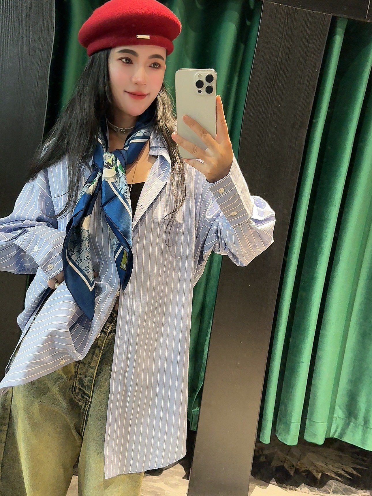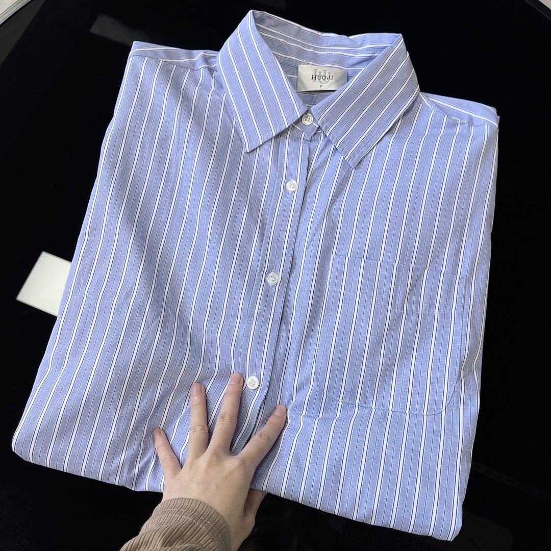韩里韩气的蓝色条纹衬衫!干净的蓝白条纹,既不单调也不会太过张扬,宽松舒适的廓形不挑身材,单穿叠穿内搭都好看日常简约又百搭,面料不扎不易皱上身显气质显白,这件真的穿不腻!