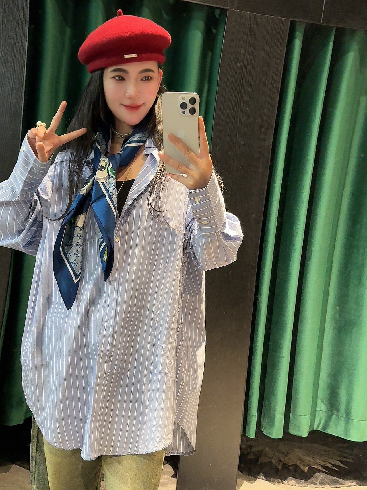 !刚需蓝条纹!男女同款!均码!宽松大版型!纯原单的东西!官方5-600 上身显气质显白,这件真的穿不腻!80-180斤都能穿!就是很宽大的版⚠️ 调性十足
