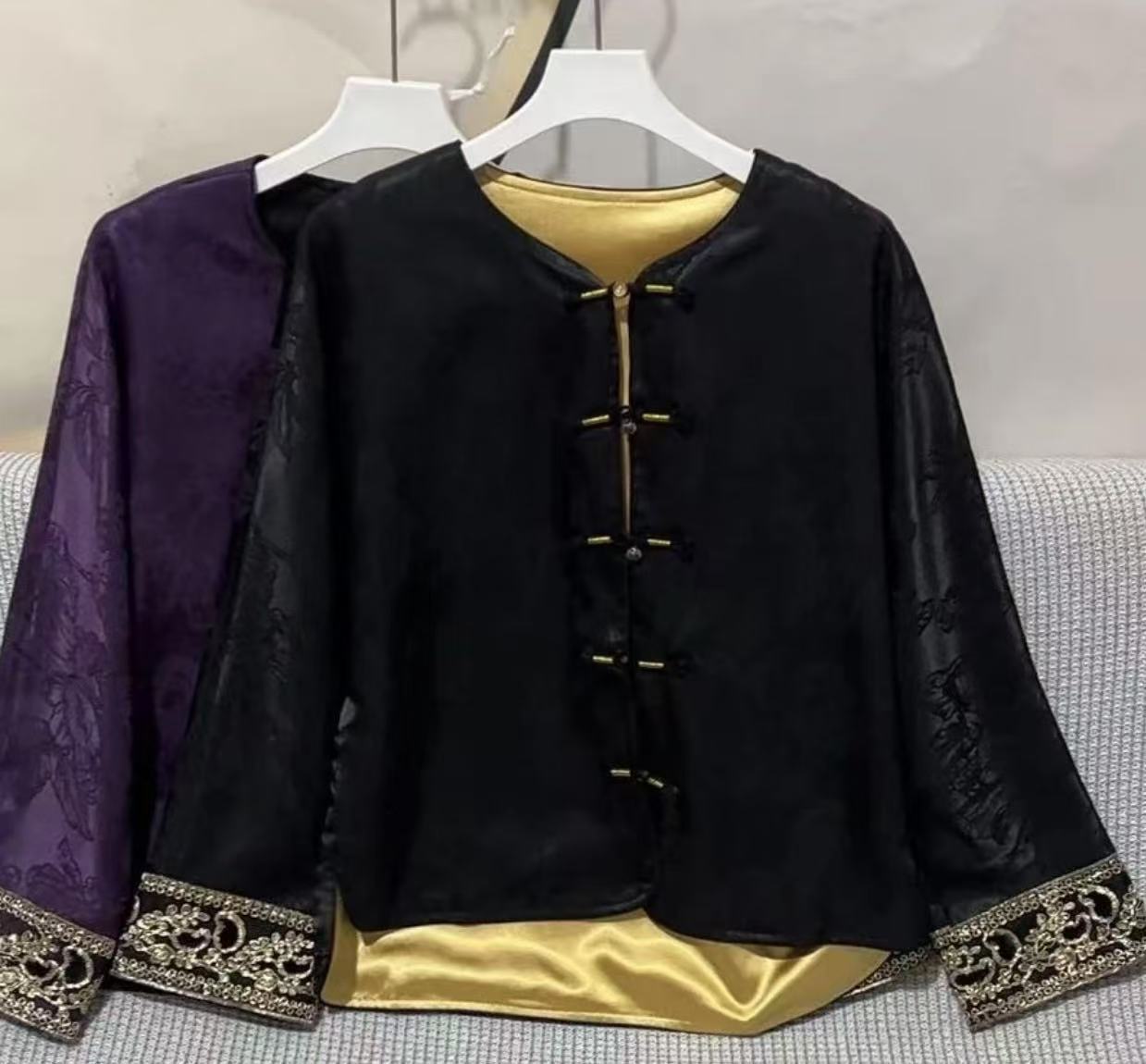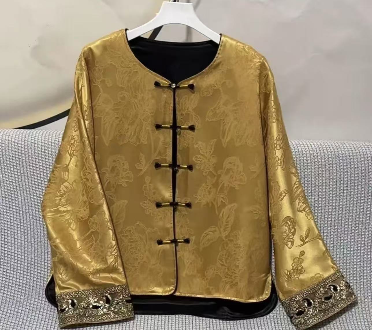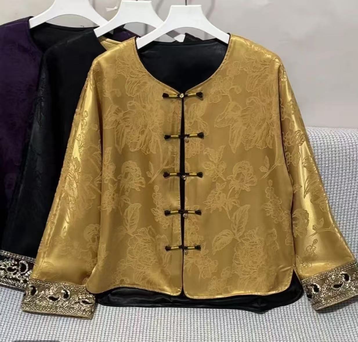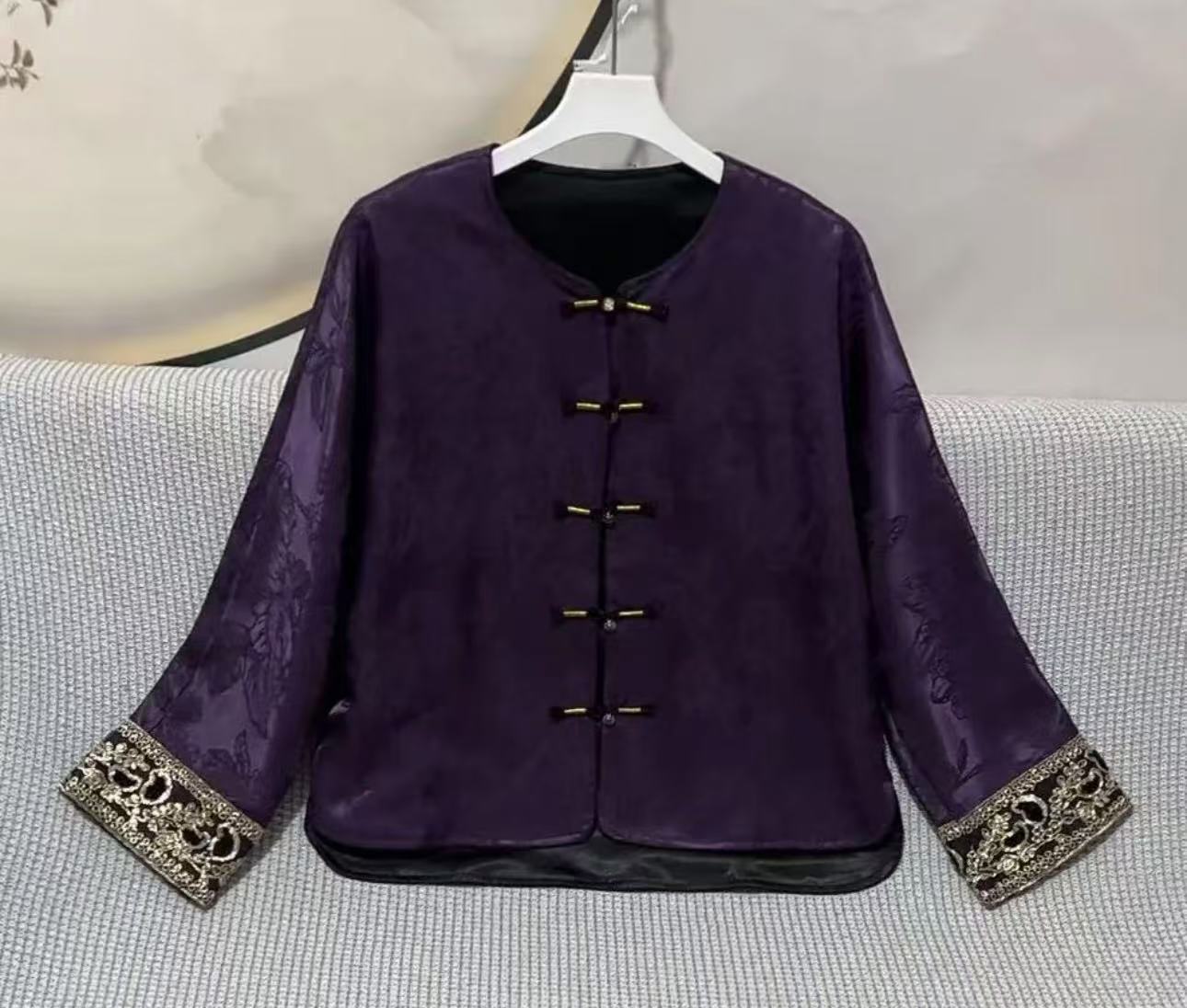 丁摩 气质矜贵国风圆领盘扣单排扣宽松复古春秋新款人丝冠乐绉外套5ZF-4076