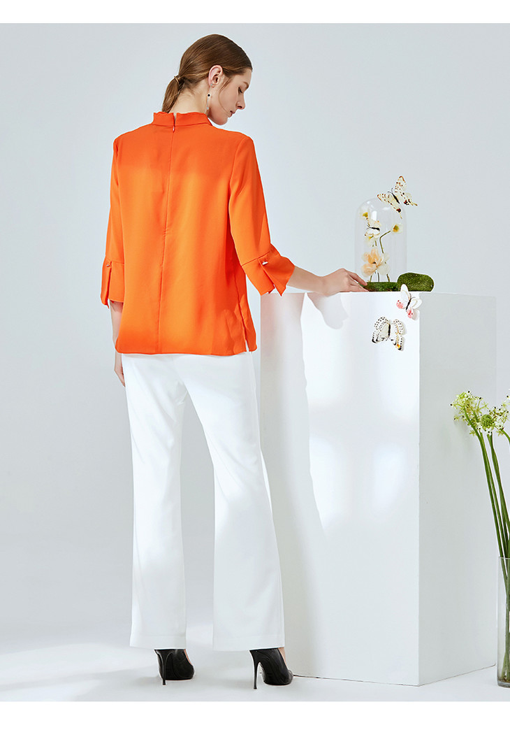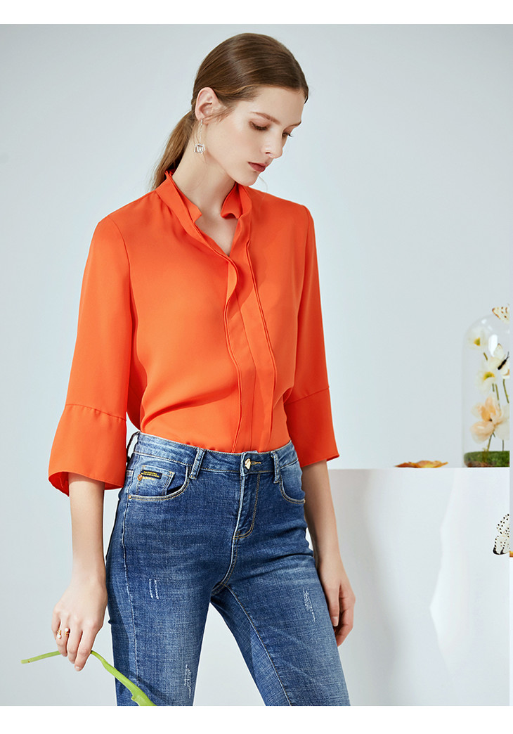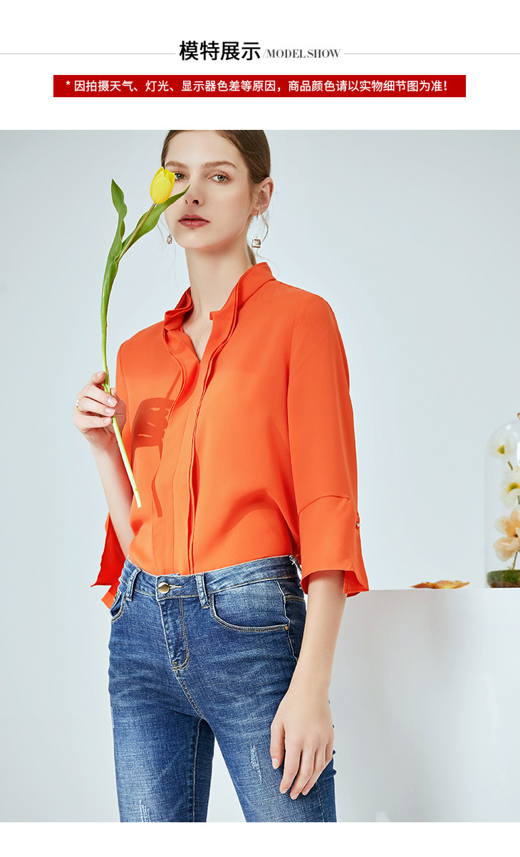 EITIE爱特爱女装夏季新品V领七分荷叶袖简约纯色衫上衣薄5713435