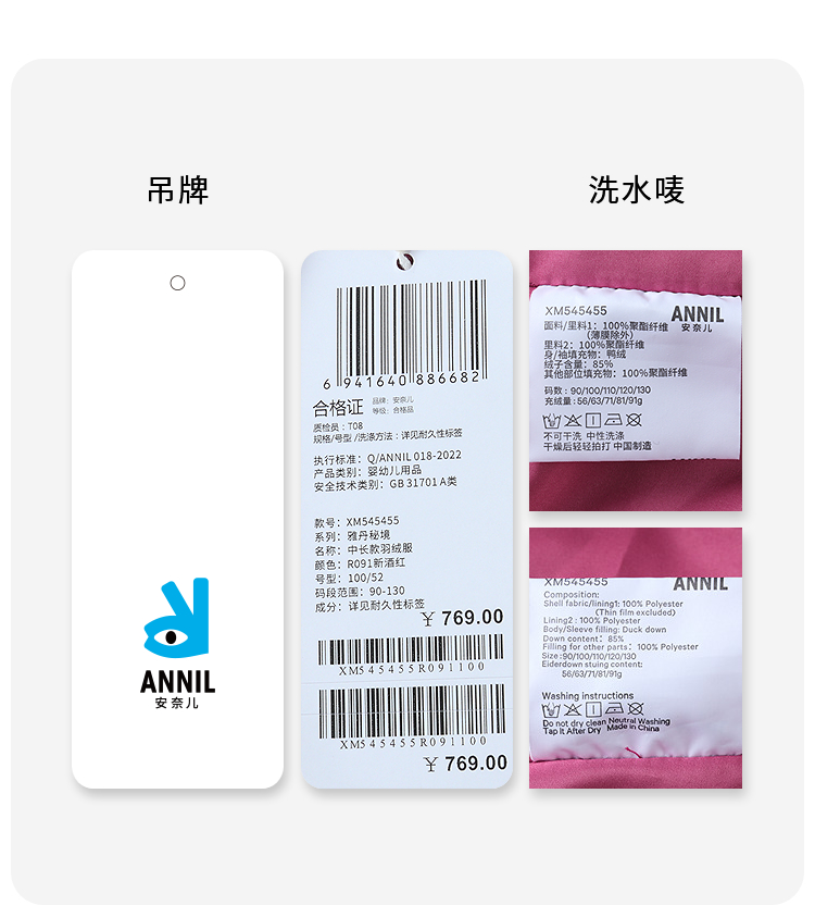 【实体店同款】男女童中长款羽绒服冬季新款安奈儿童装XM545455