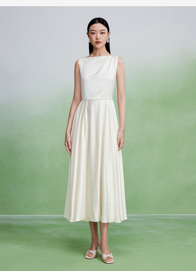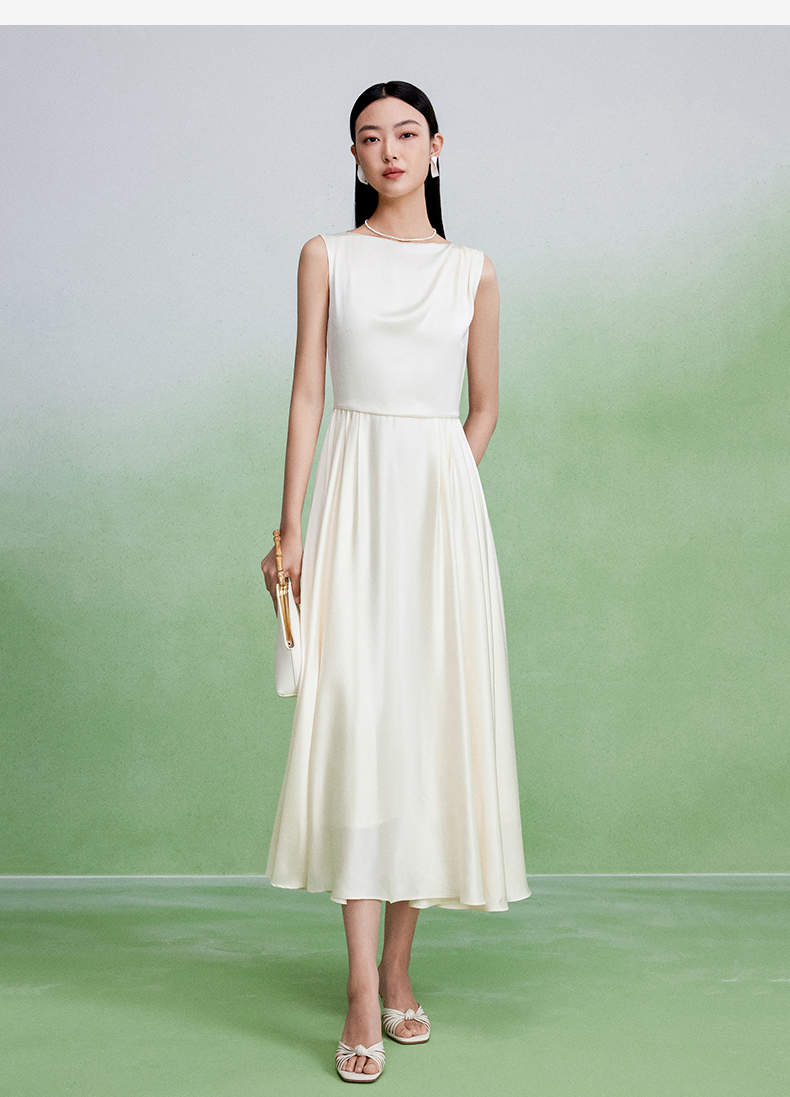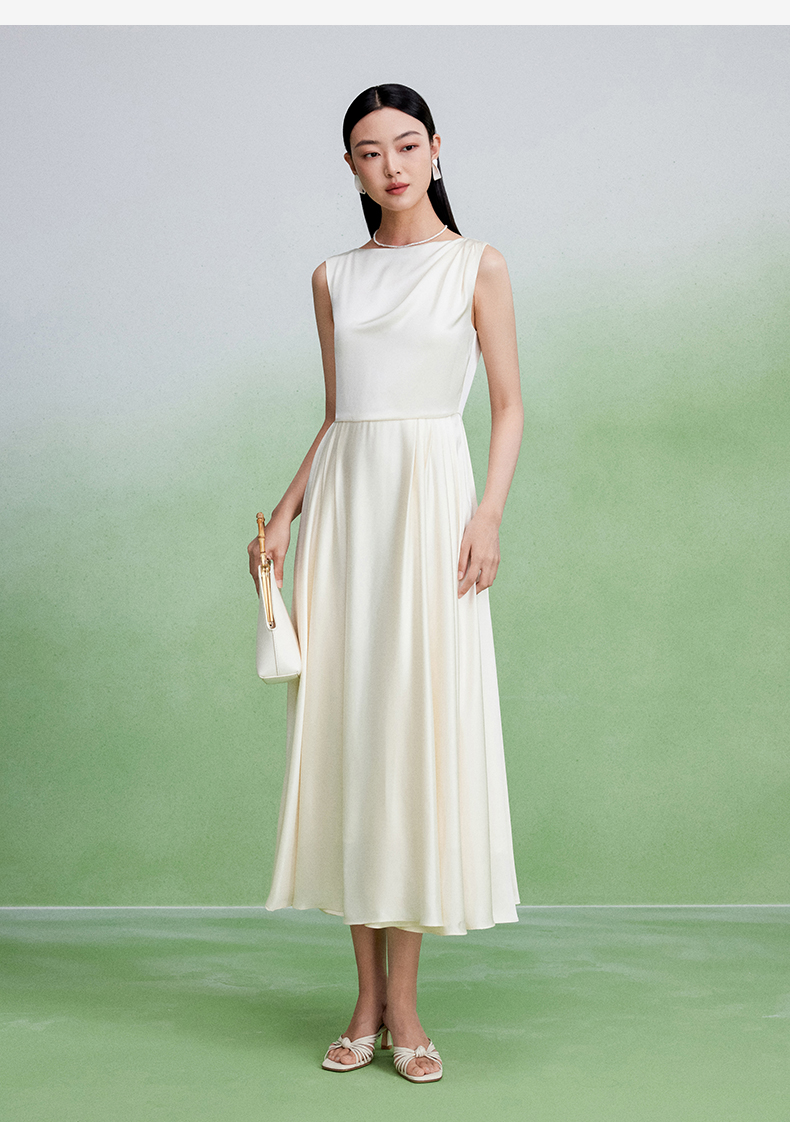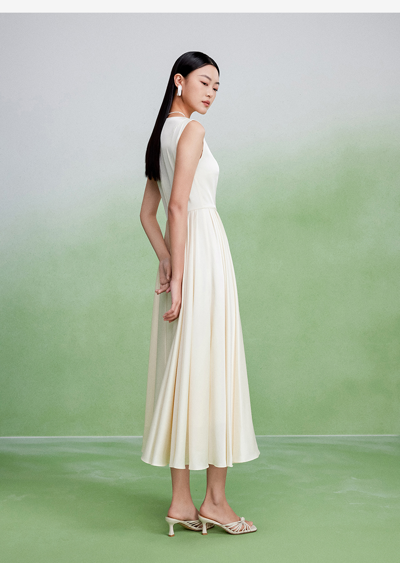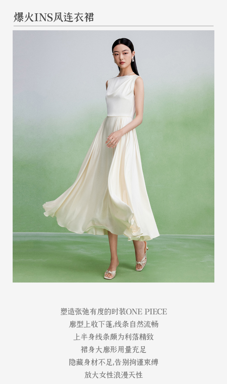 西嘉LYQ2402080C+IMPRESS/西嘉醋酸简单大方无袖连衣裙女夏季褶裥设计感气质伞裙
