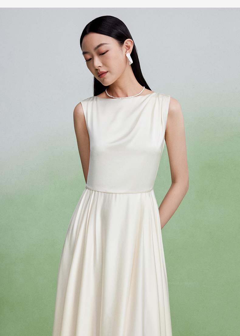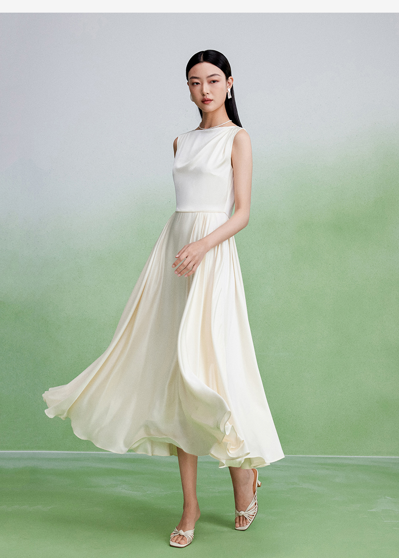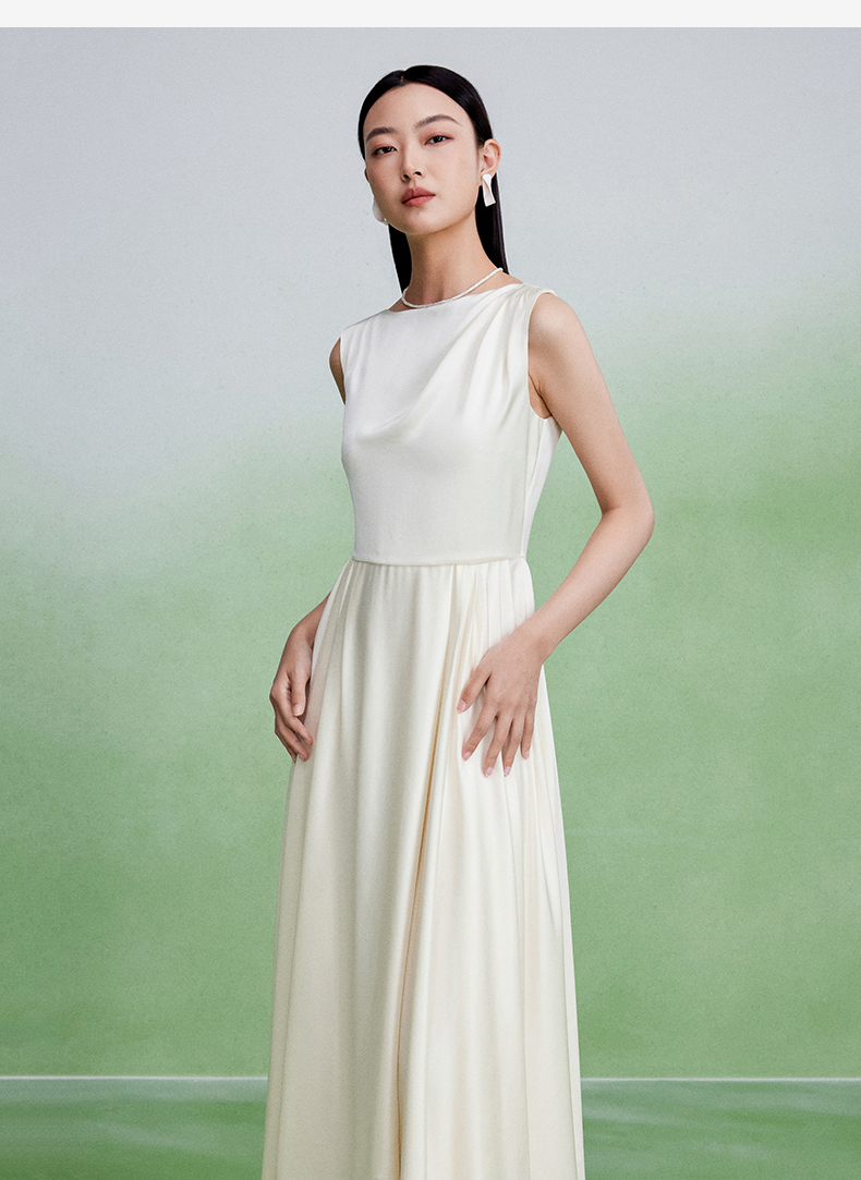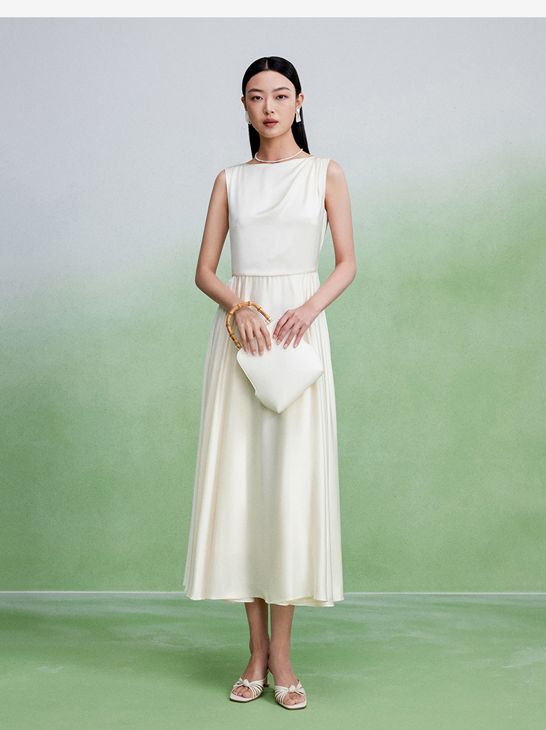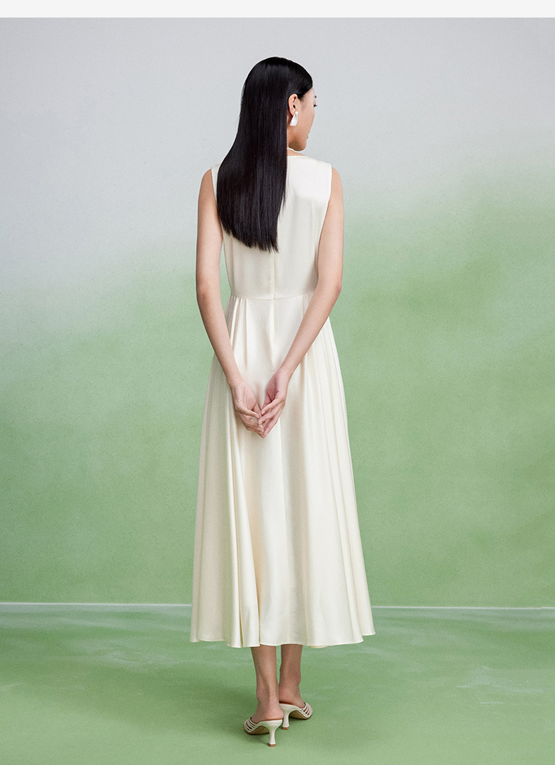西嘉LYQ2402080C+IMPRESS/西嘉醋酸简单大方无袖连衣裙女夏季褶裥设计感气质伞裙