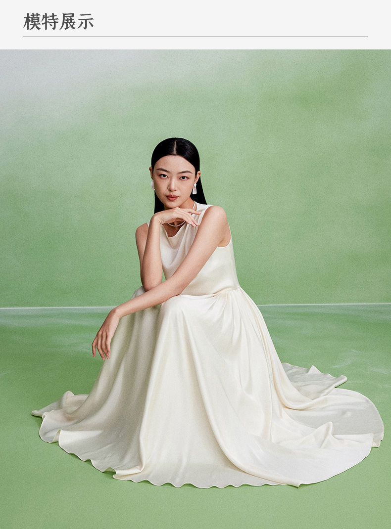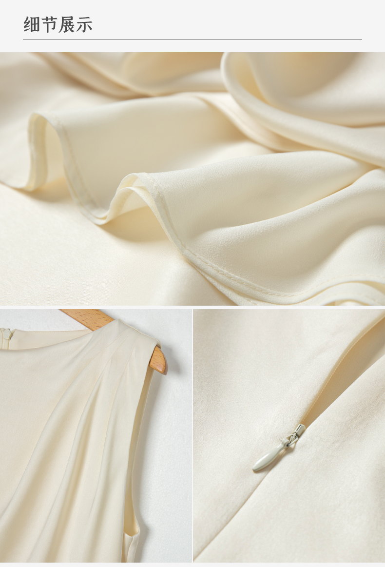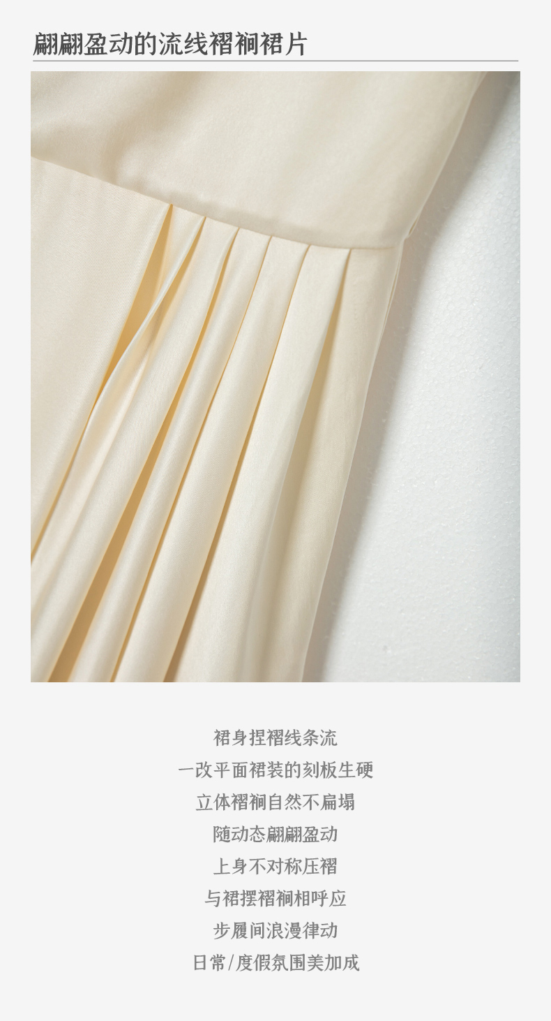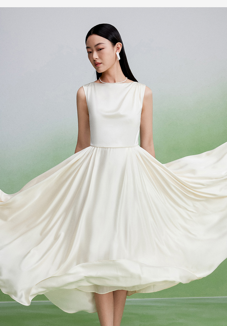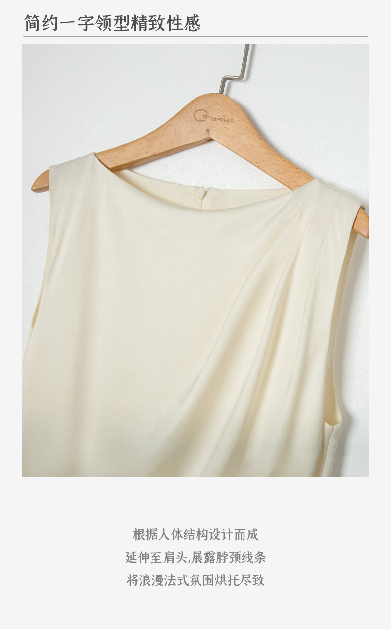 西嘉LYQ2402080C+IMPRESS/西嘉醋酸简单大方无袖连衣裙女夏季褶裥设计感气质伞裙
