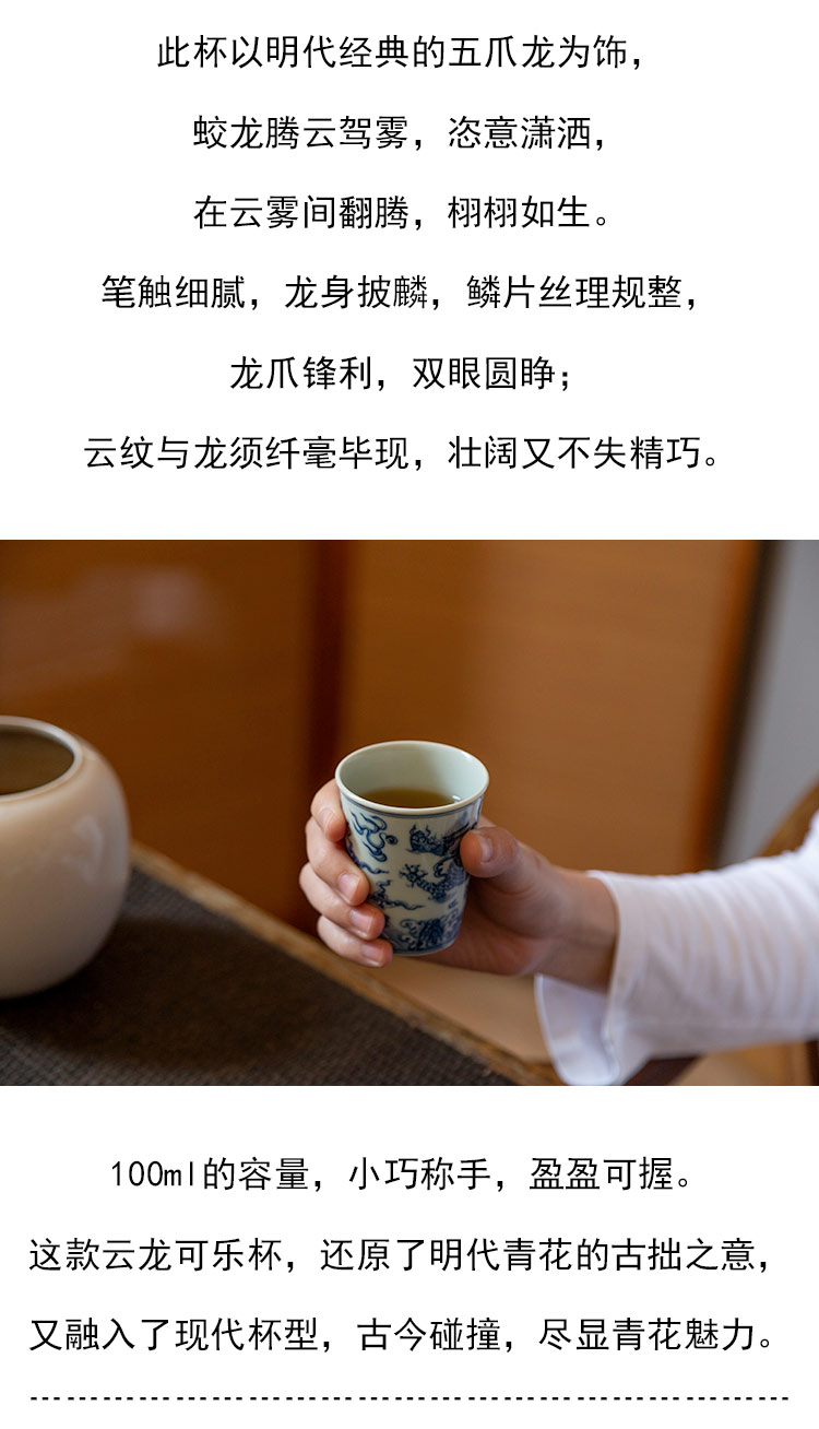 茶香记 仿明青花 云龙可乐杯 浓重青翠 工笔精绘 气势夺人 茶杯