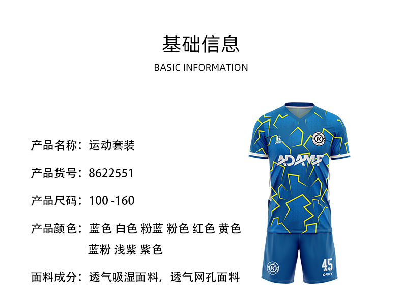 ORKY沃恺 儿童足球服套装小学生球衣印字训练服组队定制 男童衣服