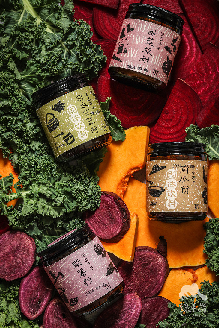 不仅有冻干的甜菜根粉、我们还做了同样作为超级食物的有机冻干羽衣甘蓝粉。