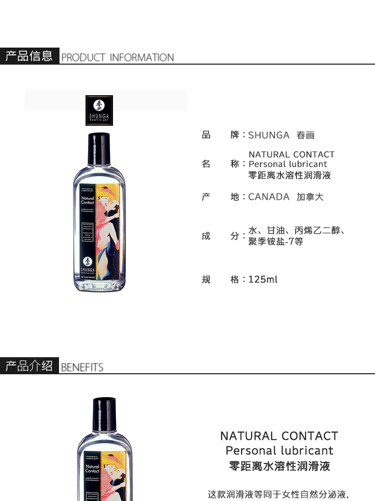 SHUNGA春画 零距离水溶性润滑液 免洗润滑油 人体润滑剂 NATURAL CONTACT