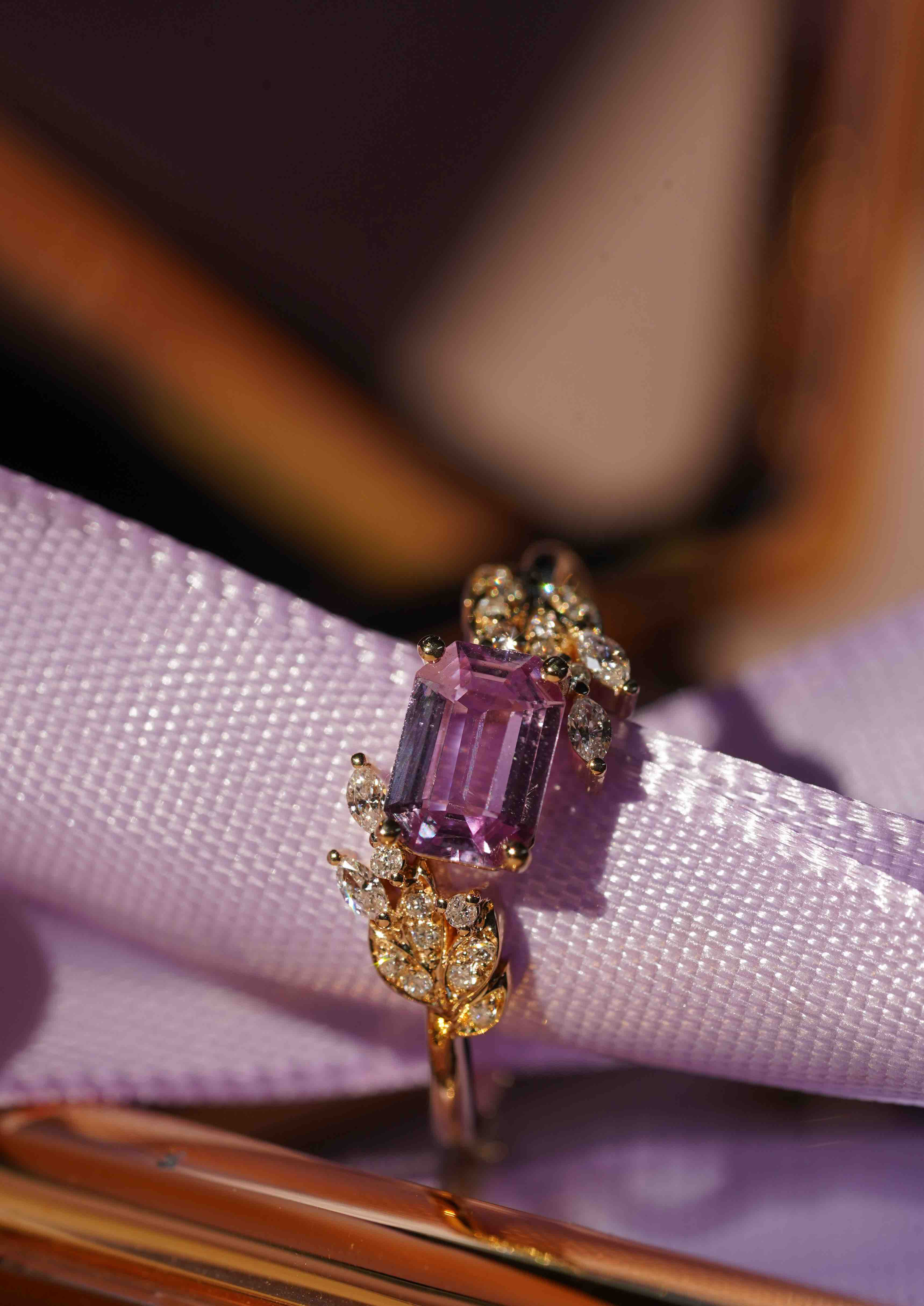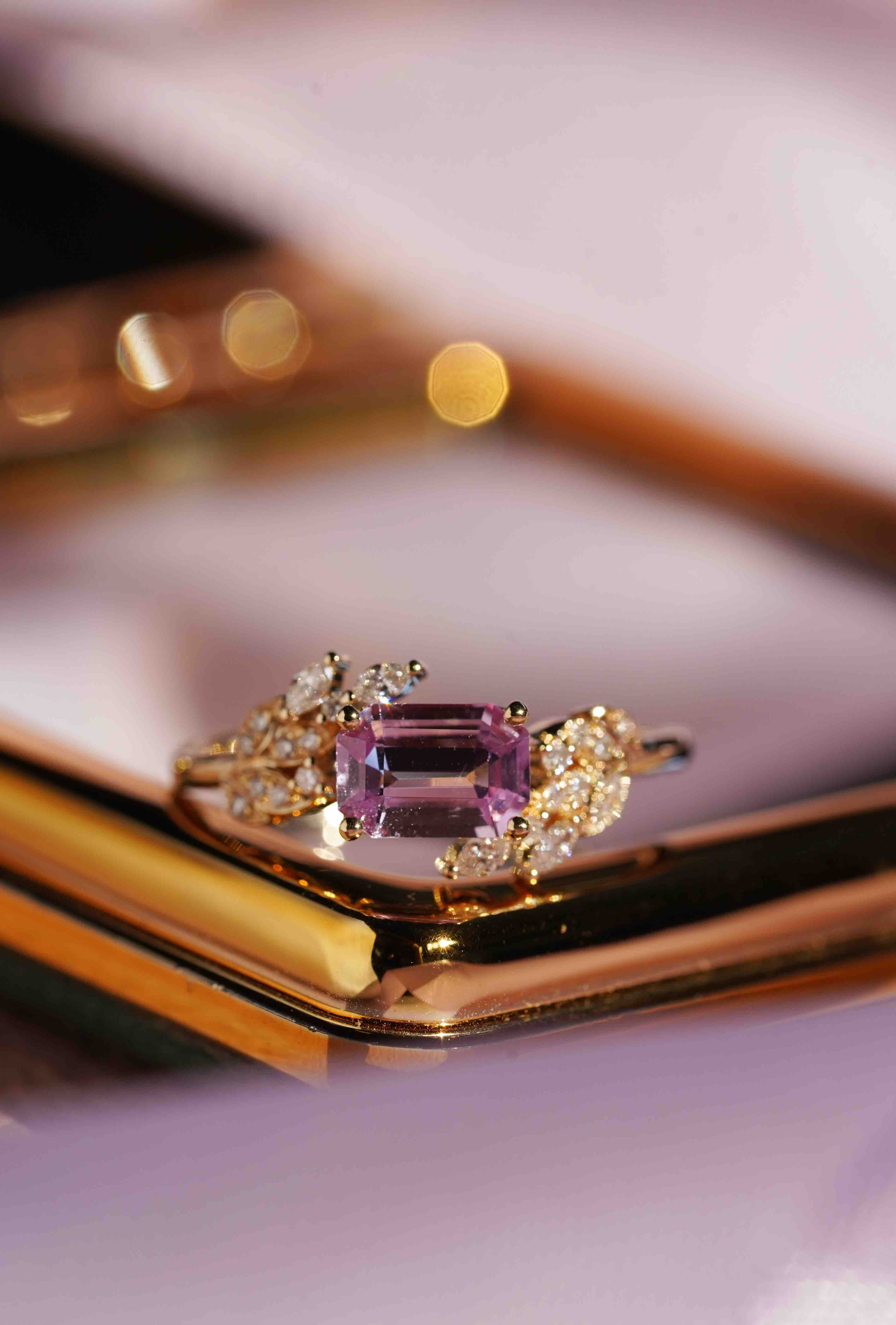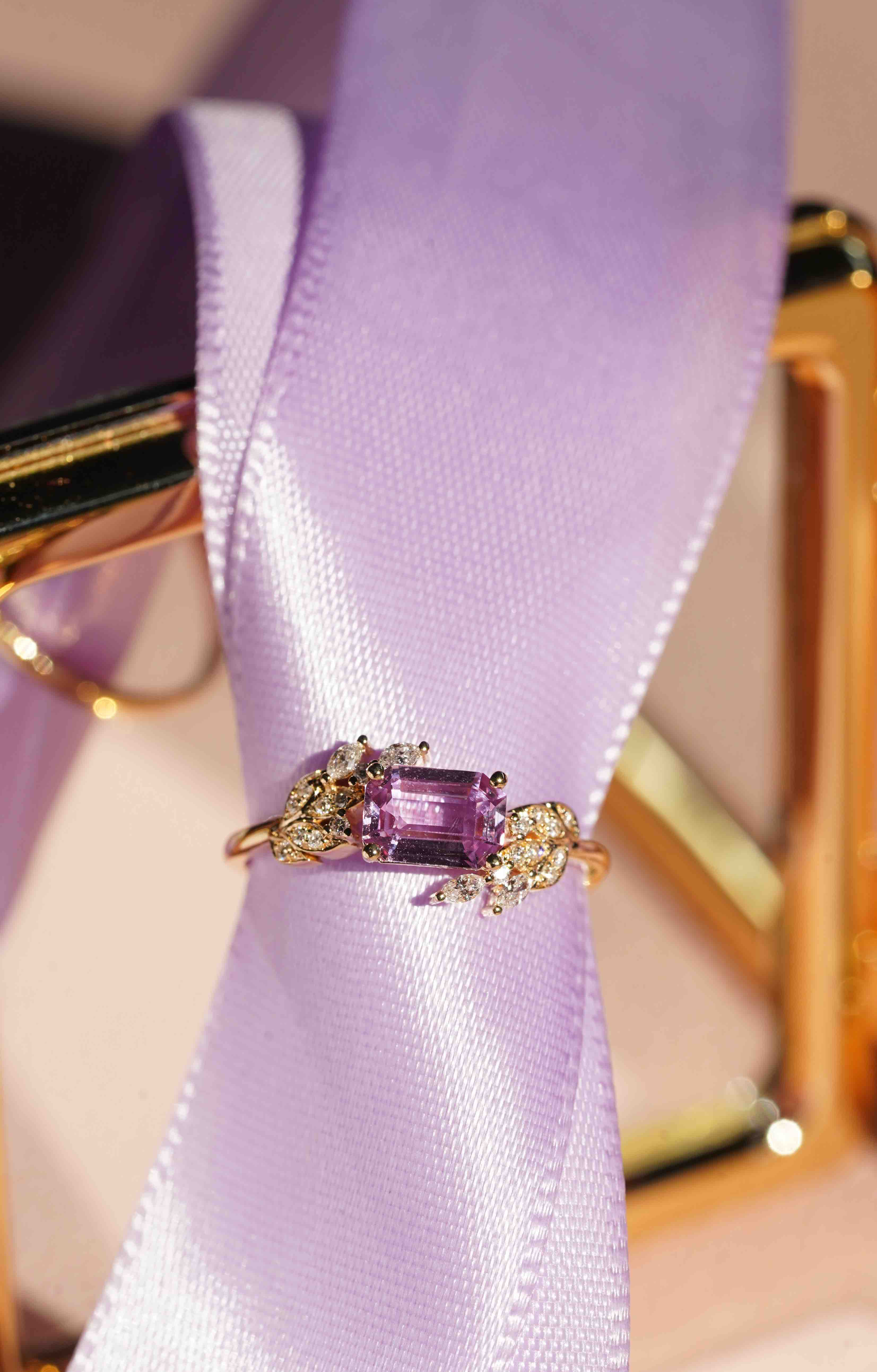 无烧紫蓝宝戒指