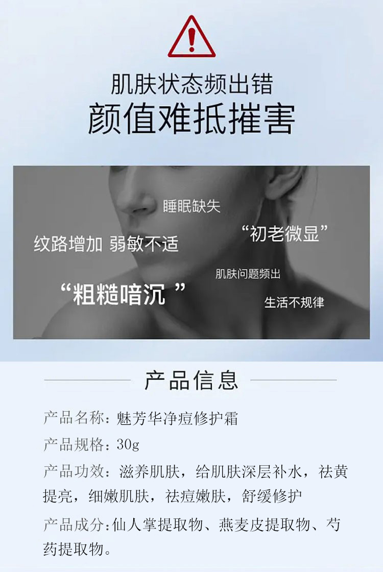 魅芳华净痘修护霜30g美容院正品直发包邮改善痘痘肌祛除粉刺舒缓