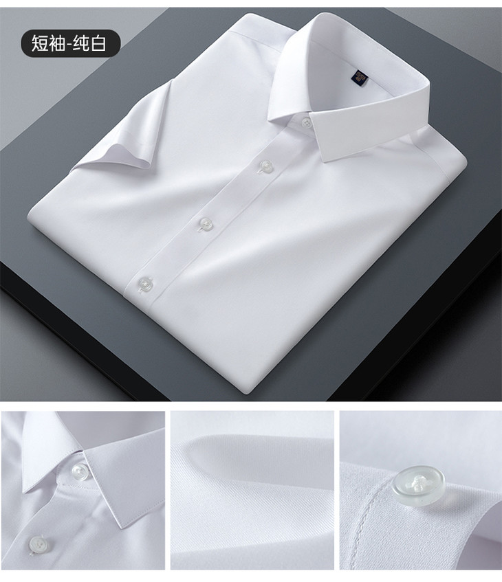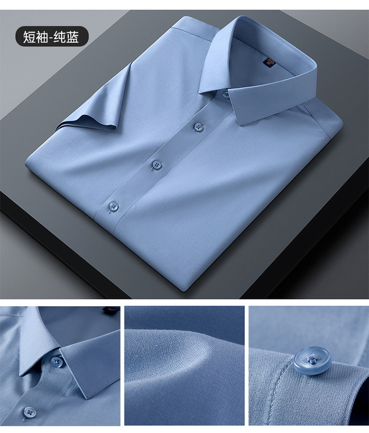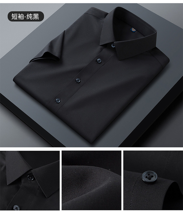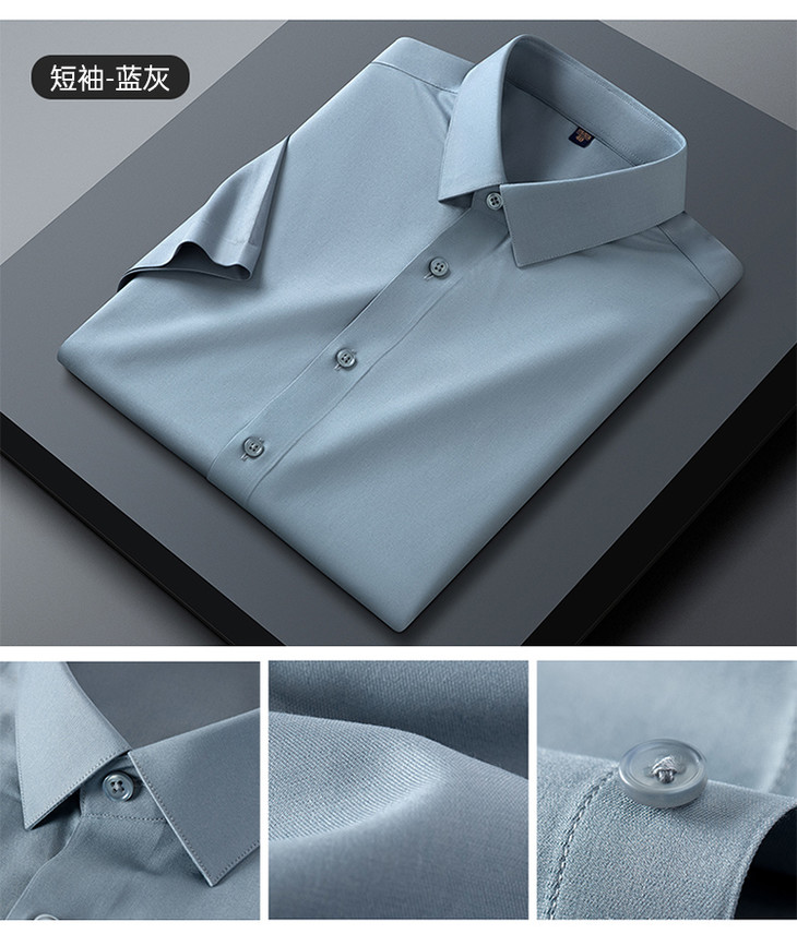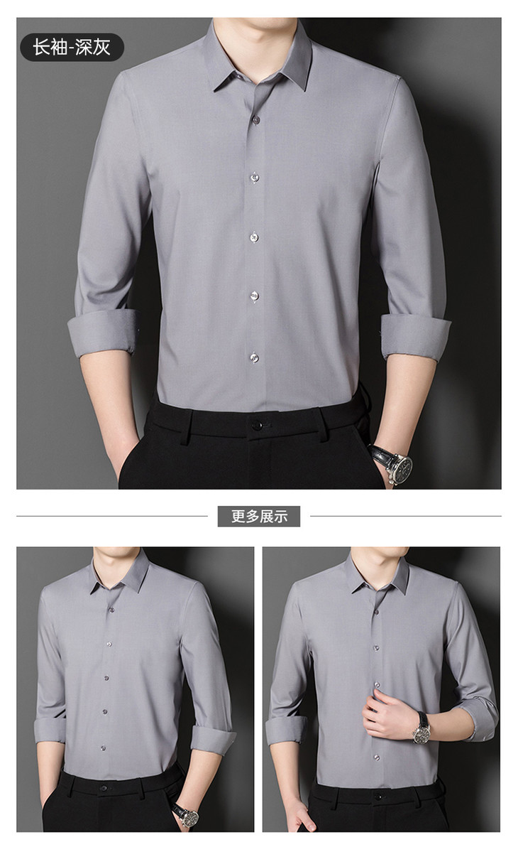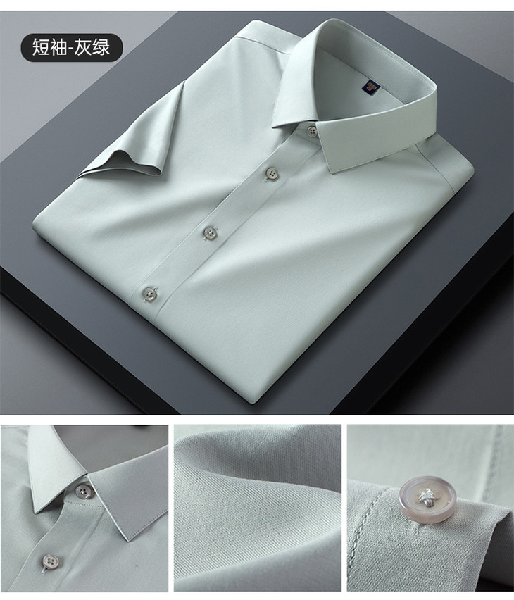 【桑蚕丝弹力免烫衬衫】商务通勤翻领长袖衬衫 透气修身男士短袖衬衣