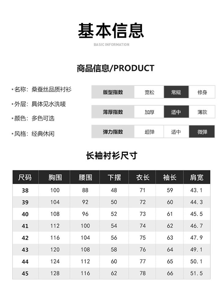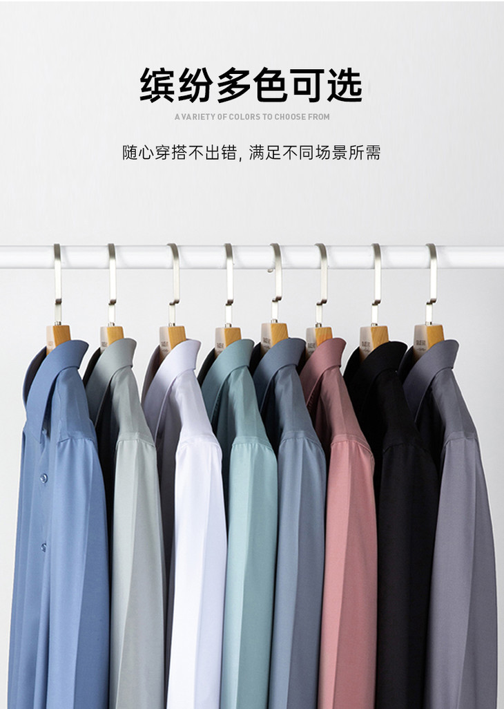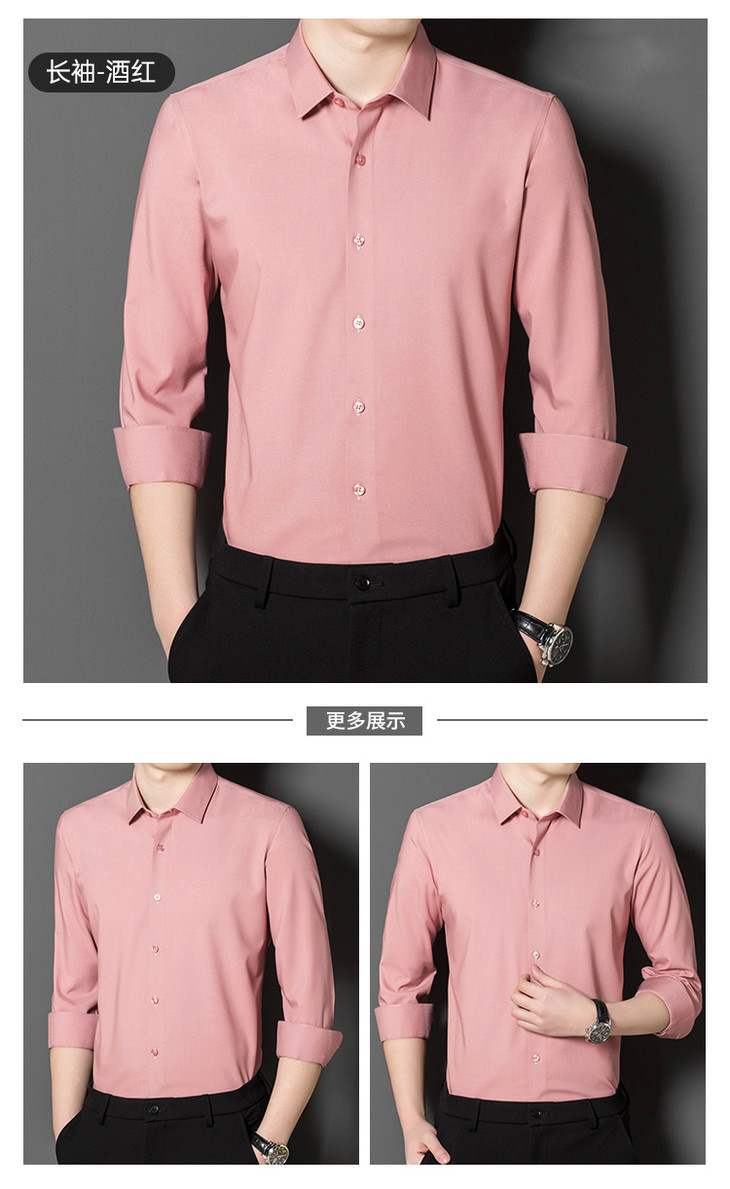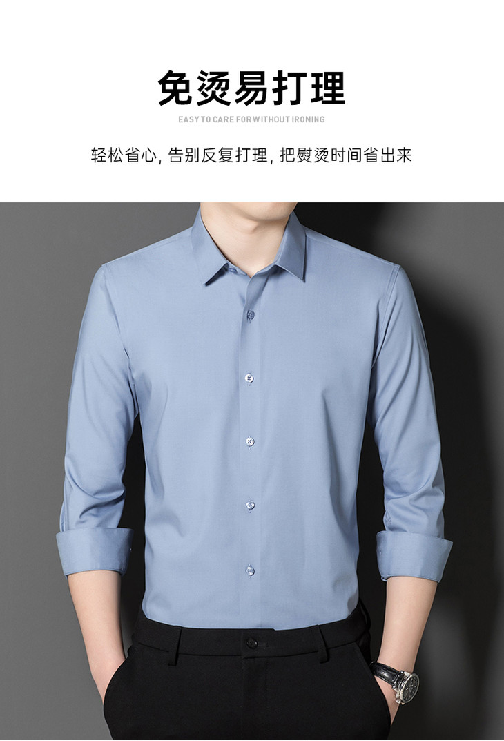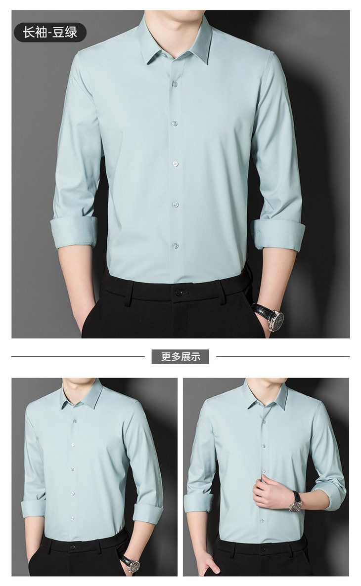 【桑蚕丝弹力免烫衬衫】商务通勤翻领长袖衬衫 透气修身男士短袖衬衣