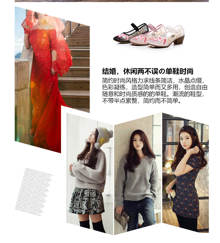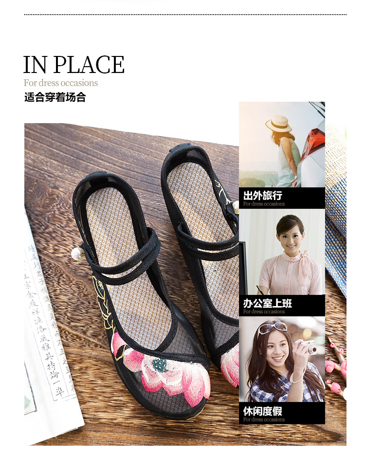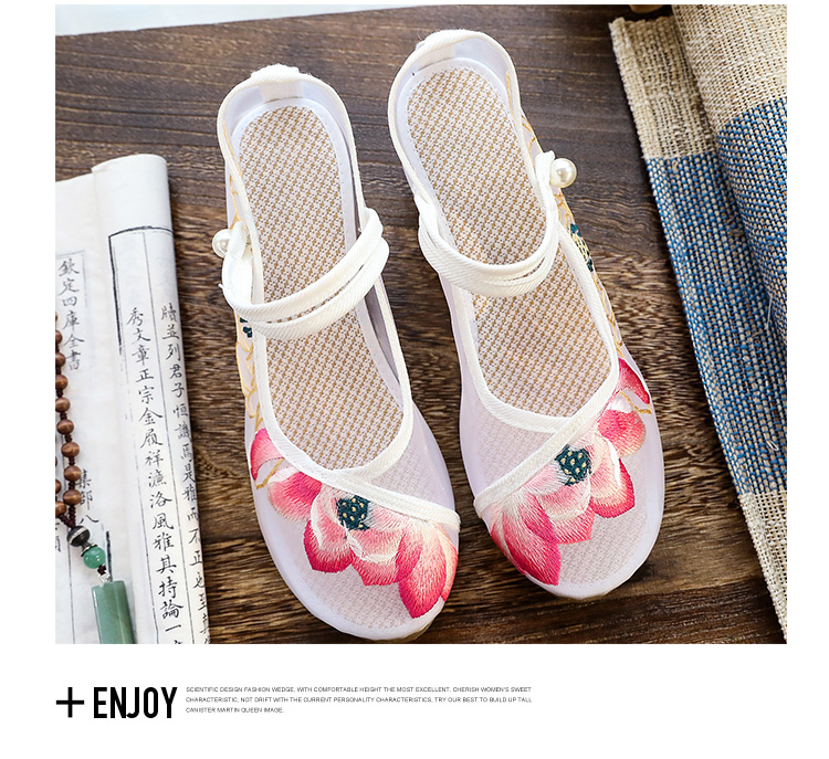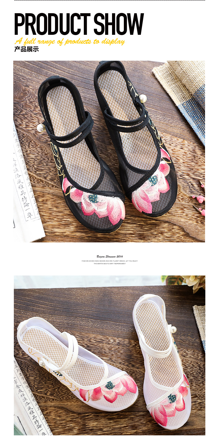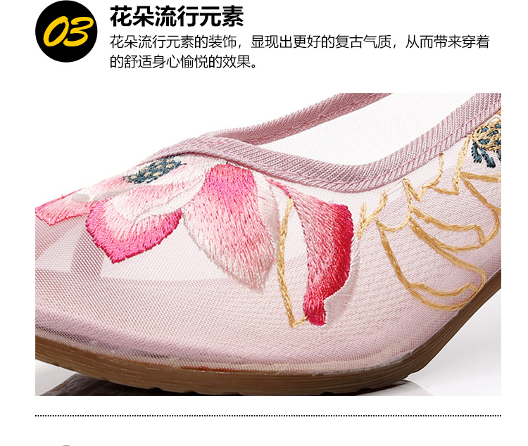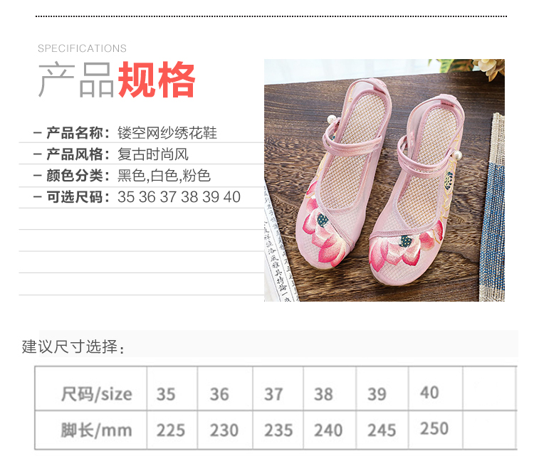 荷花刺绣高跟粗跟夏季古风镂空网纱绣花鞋XQX并蒂莲