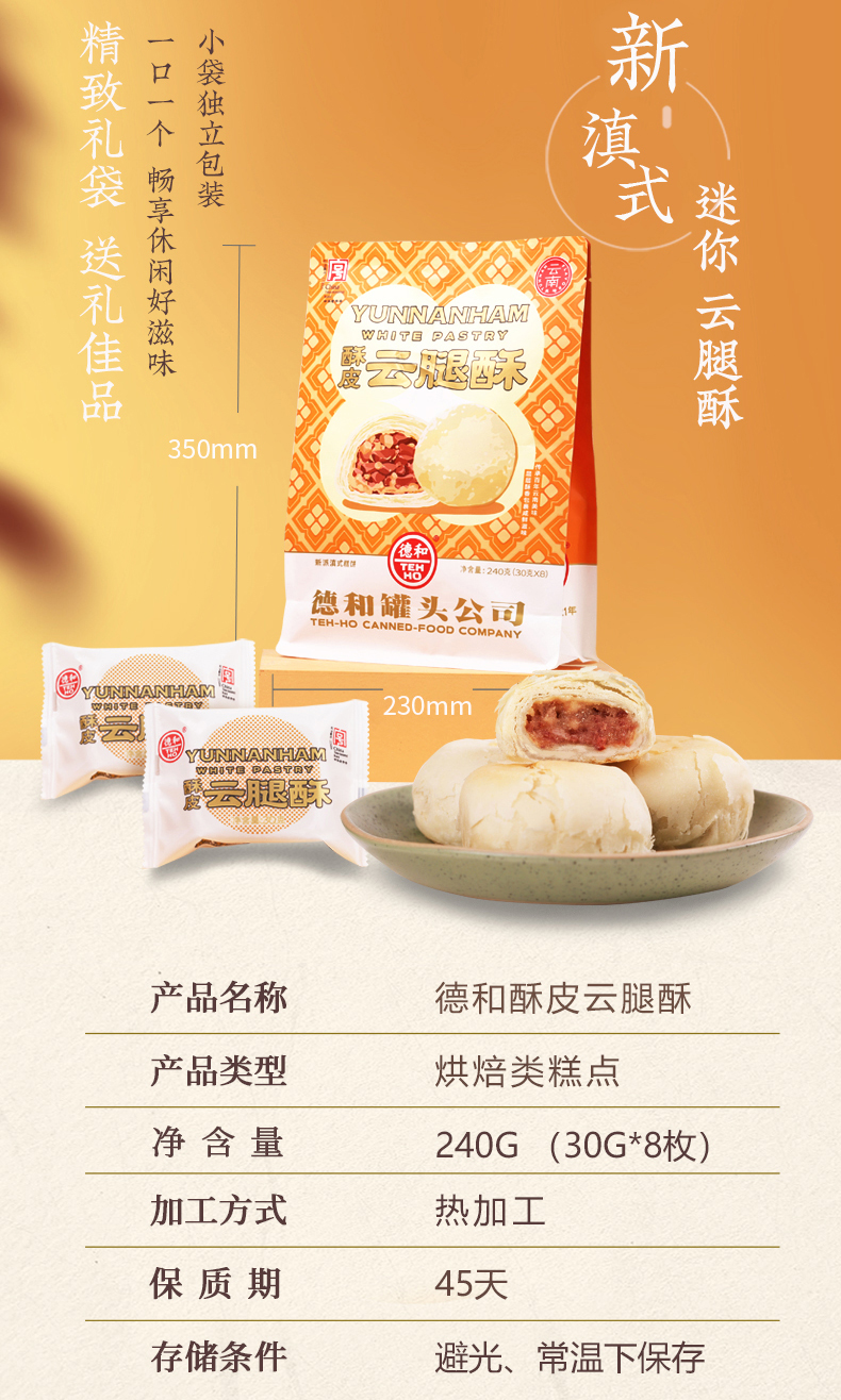 德和 酥皮云腿酥 240g/袋(30g*8枚)#糕点
