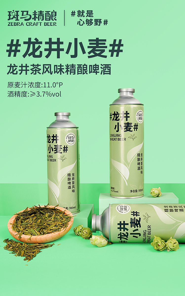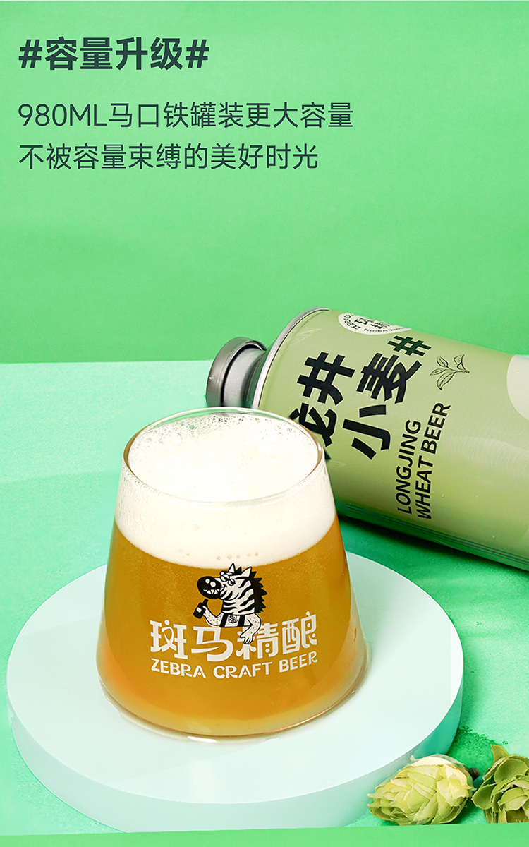 斑马精酿龙井小麦茶啤酒980ml罐