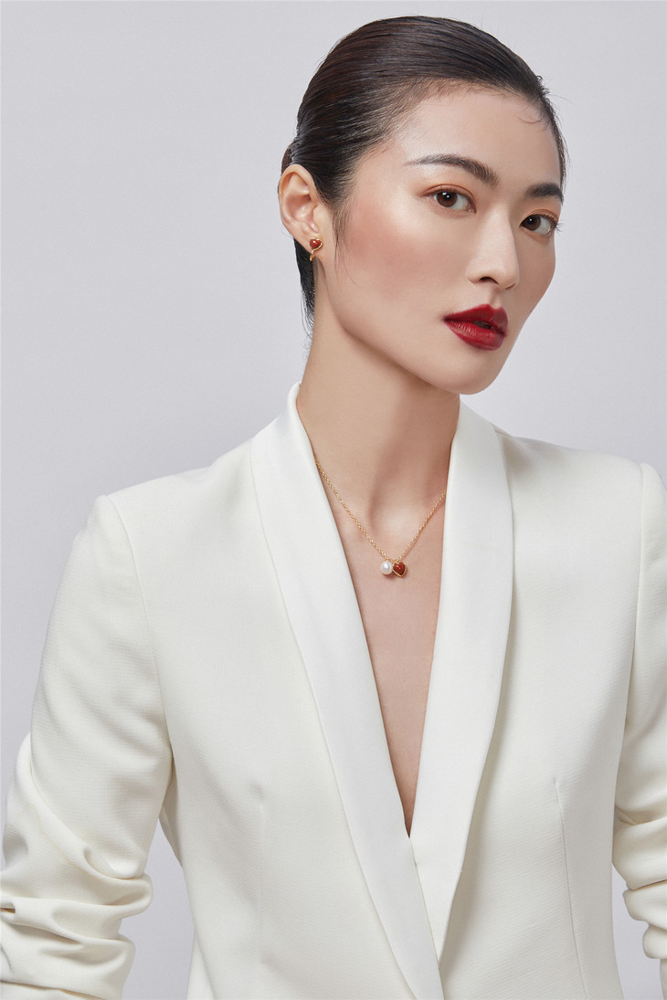 Pearl moments 珠玉系列 南红小心心天然淡水珍珠耳夹
