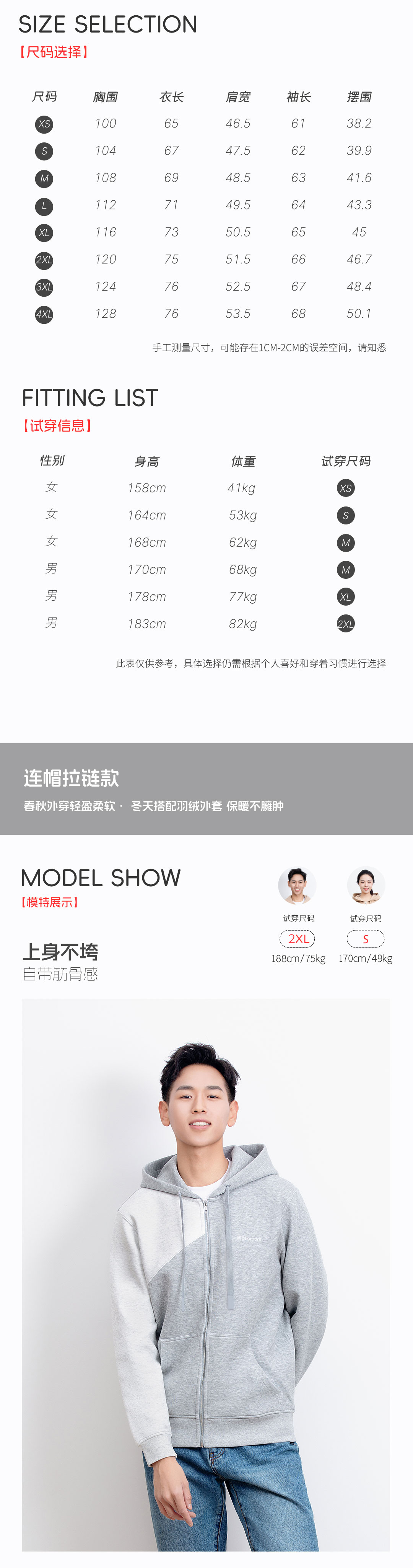 【配置-轻盈系列】新面料·拼色开衫连帽卫衣