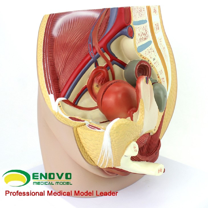 这个真人大小的模型,可拆分三部分组成,展示了女性盆腔系统的所有重要结构,并且非常详细地展示了腹腔和骨盆肌,女性泌尿生殖系统的内部结构,并且在子宫内部加了一个8周内的胎儿,展现了胎儿和子宫的关系,非常详细描绘。全部手工上色,并且配有数字指示标识
