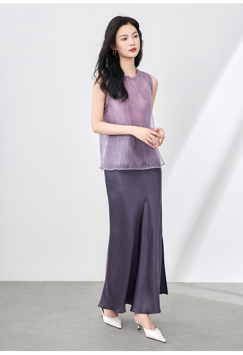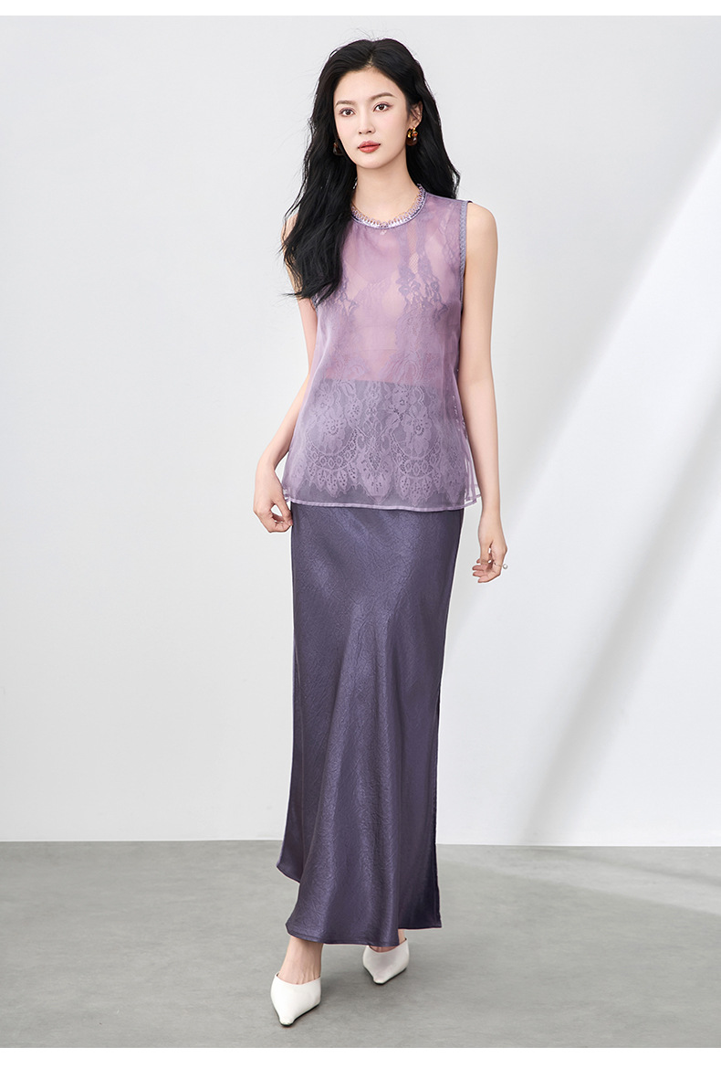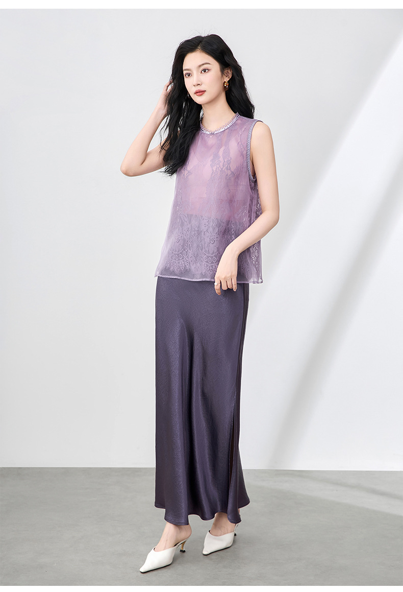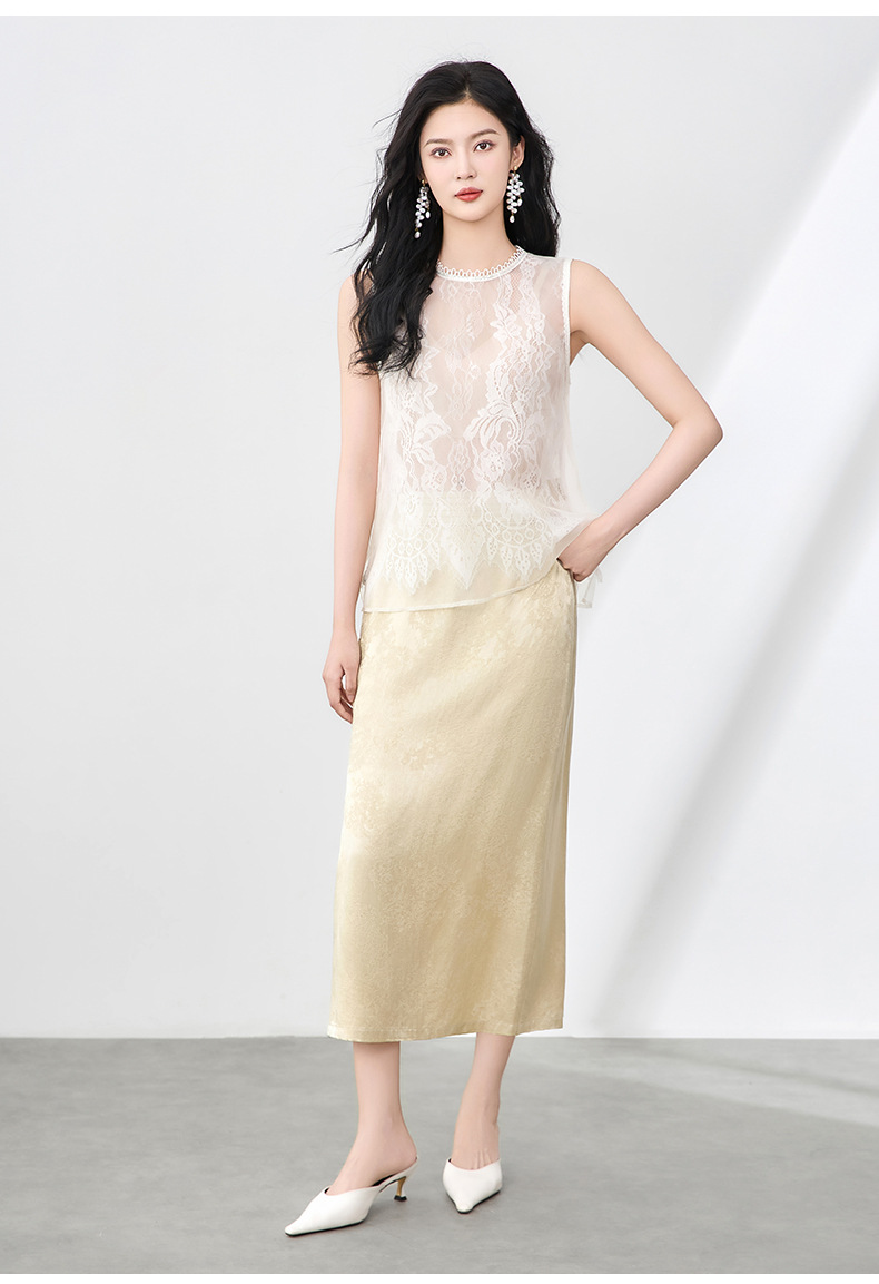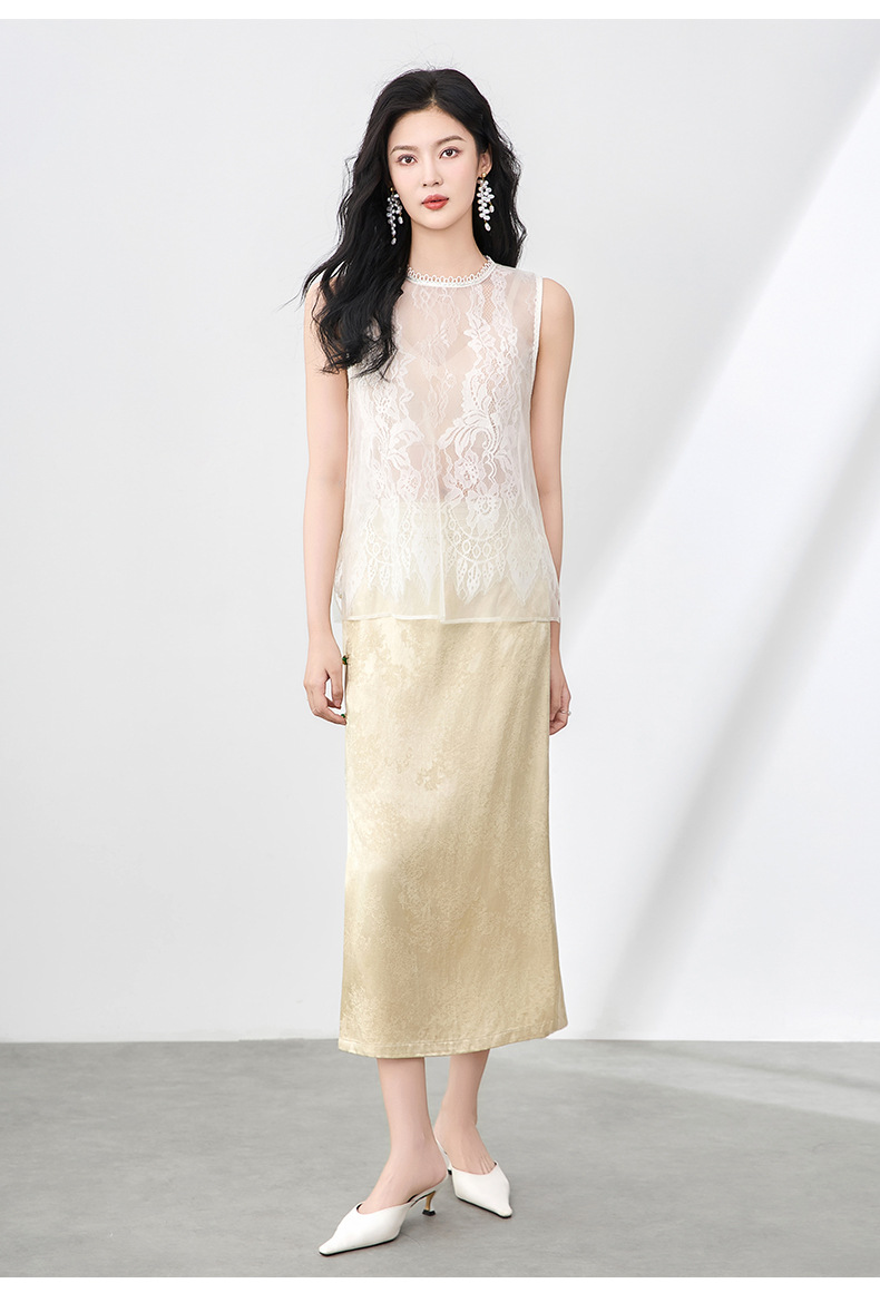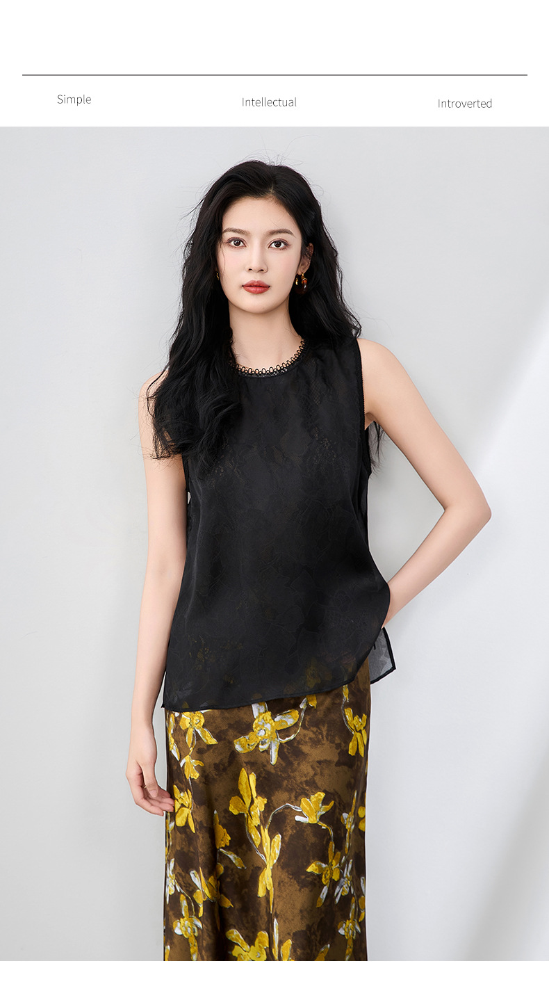 「高货wl」全新升级【铂金会员247/天猫329/差价82】(93601)洛诗琳时尚优雅欧根纱上衣蕾丝花边拼接圆领时髦洋气背心