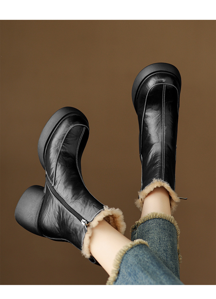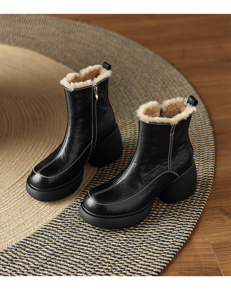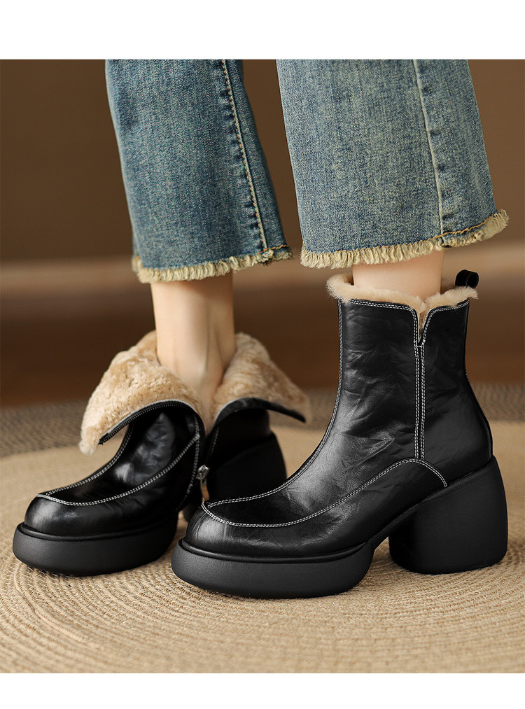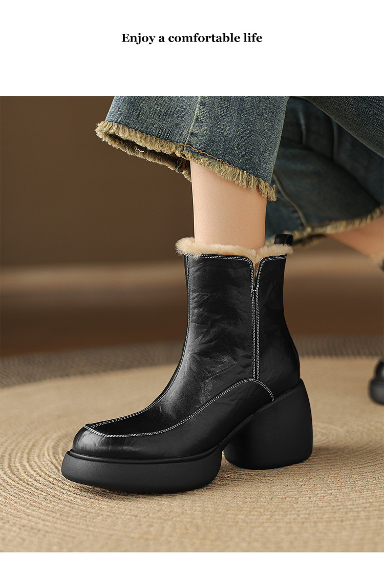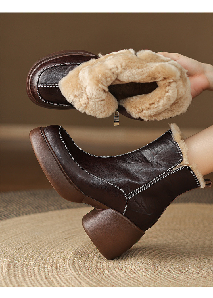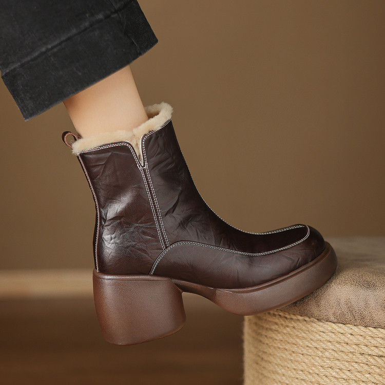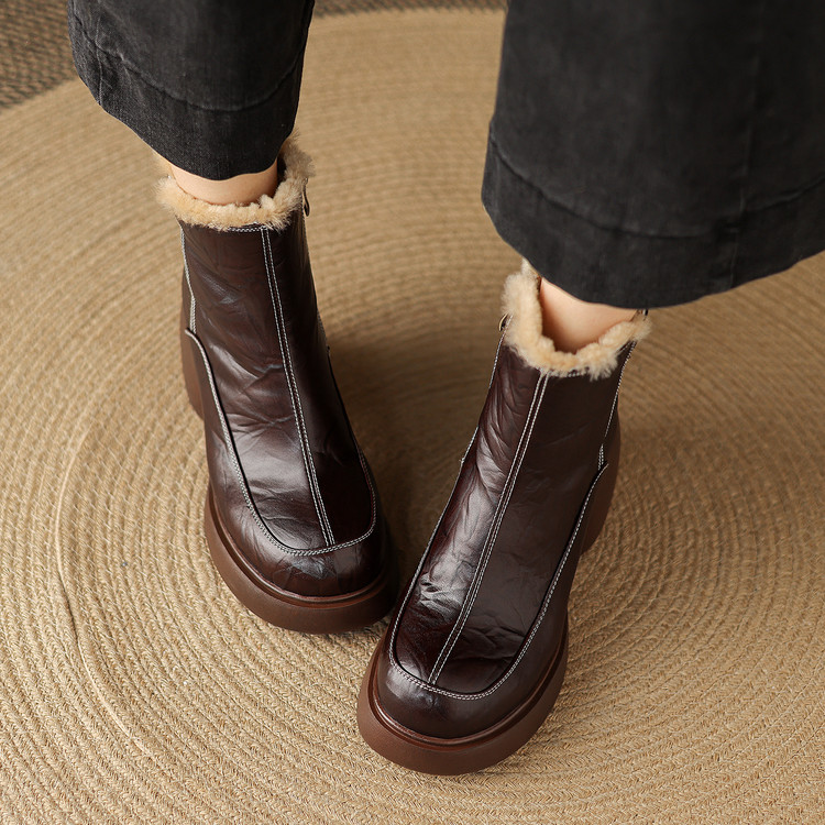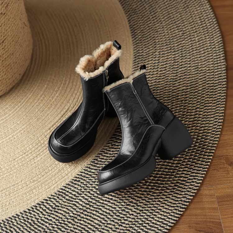 【货 号】7037【鞋面材质】牛皮【内里材质】羊毛绒【垫 脚】羊毛绒【鞋 底】橡胶大底【跟 高】8cm【颜 色】黑色 棕色【尺 码】34 35 36 37 38 39