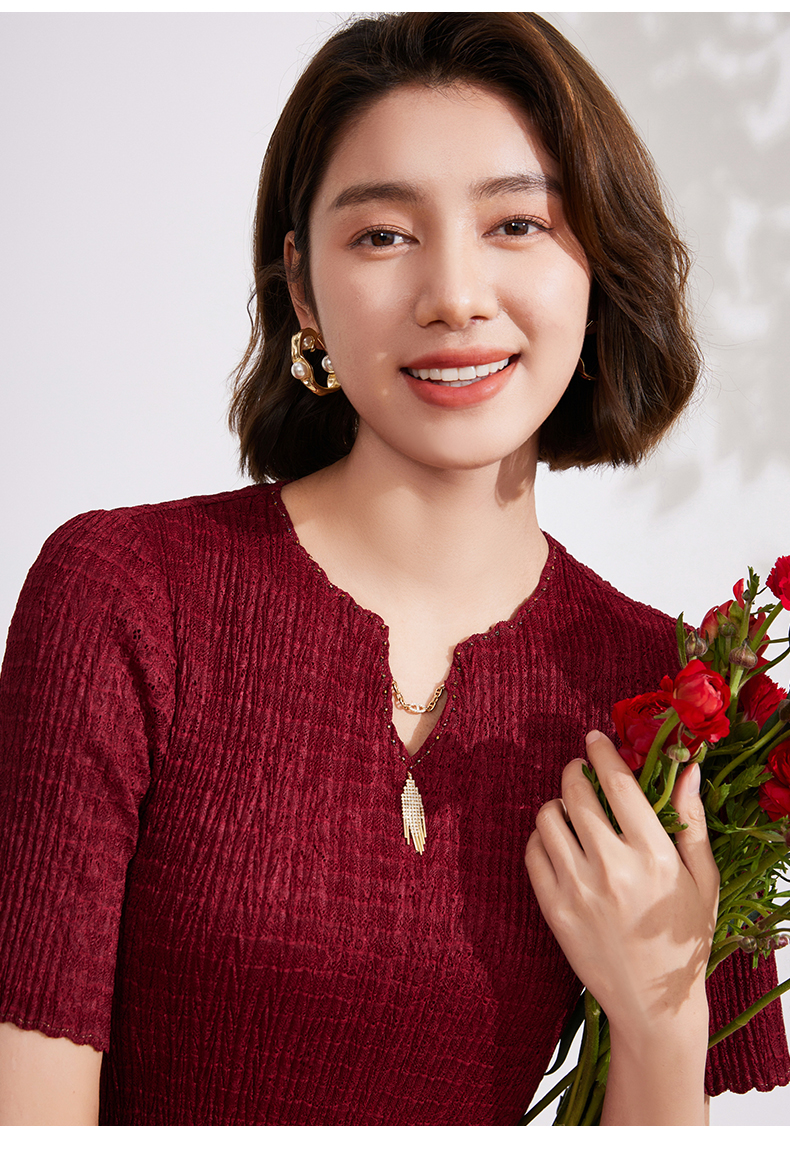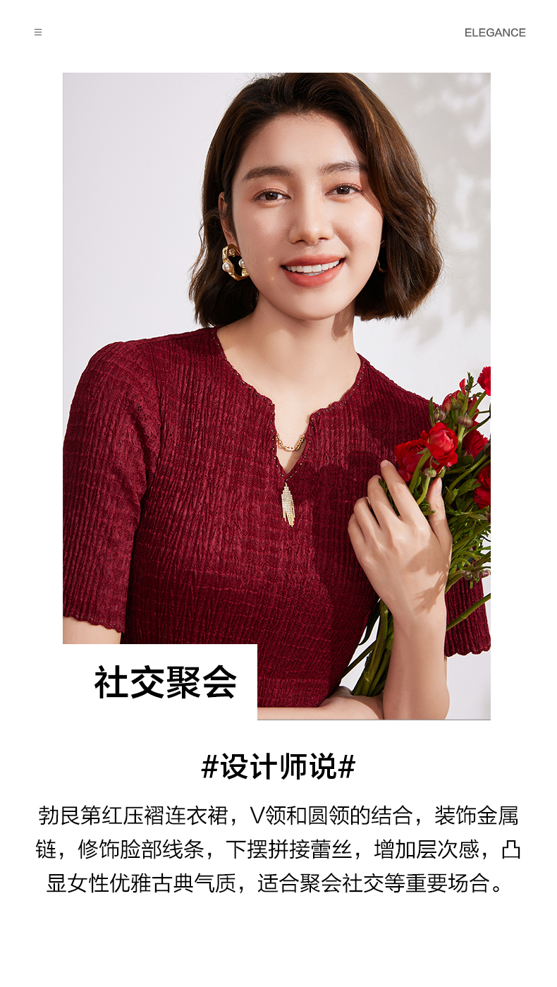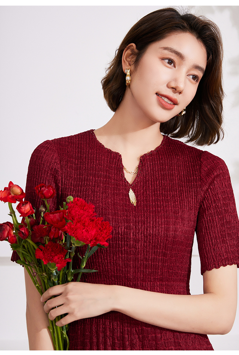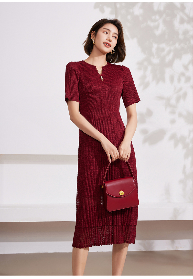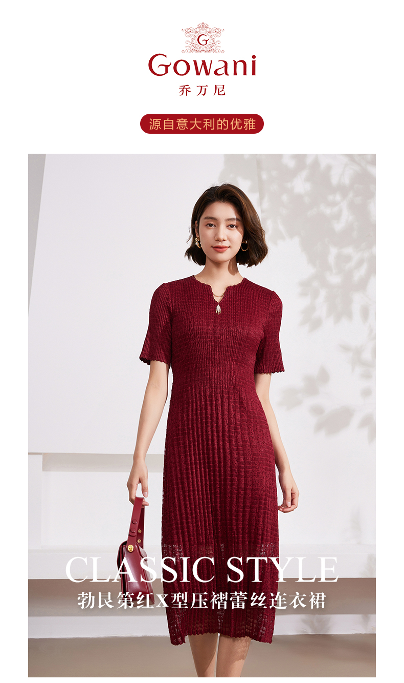 乔万尼勃艮第红压褶设计收腰连衣裙EM1E150