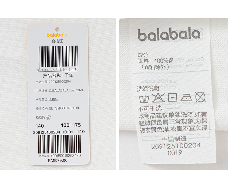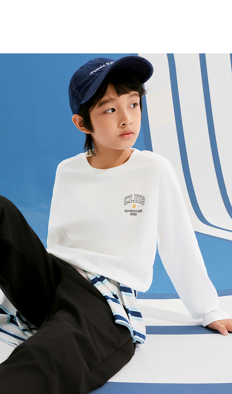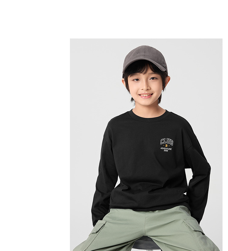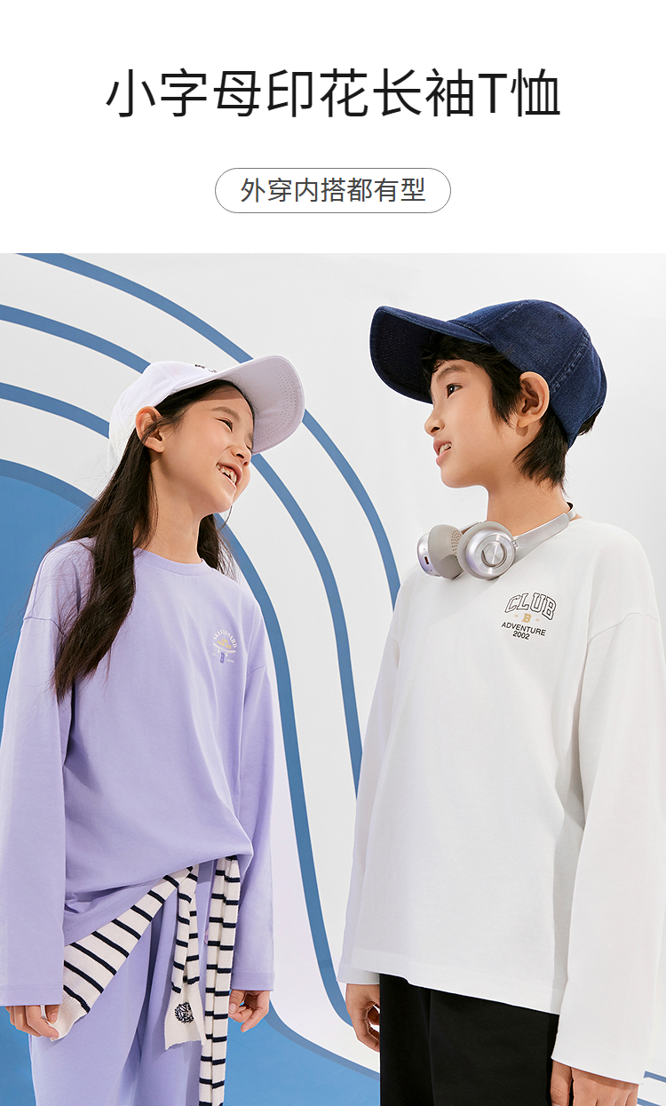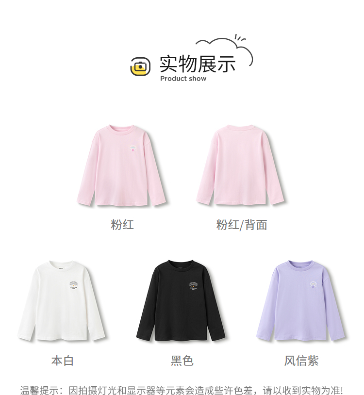 巴拉巴拉童装儿童长袖t恤男童女童2025款春装圆领百搭打底衫简约T