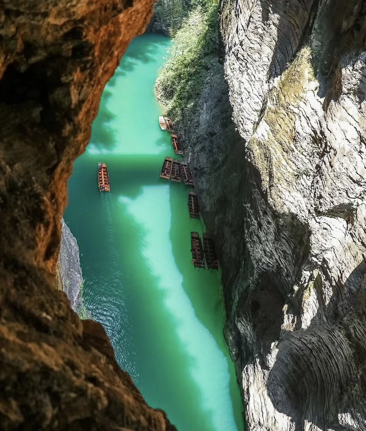 神奇的景象让屏山峡谷声名大噪,被誉为中国的“仙本那”,这样的小船被称为“太空船”。有“东方诺亚方舟”之美称。