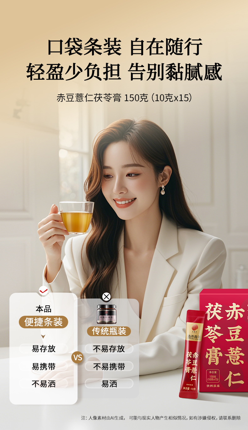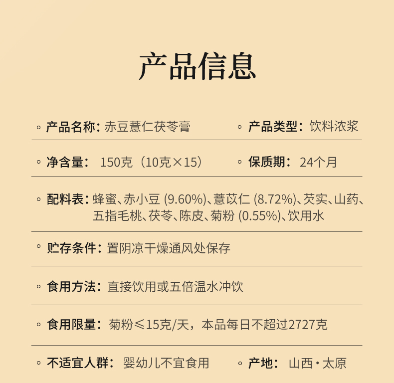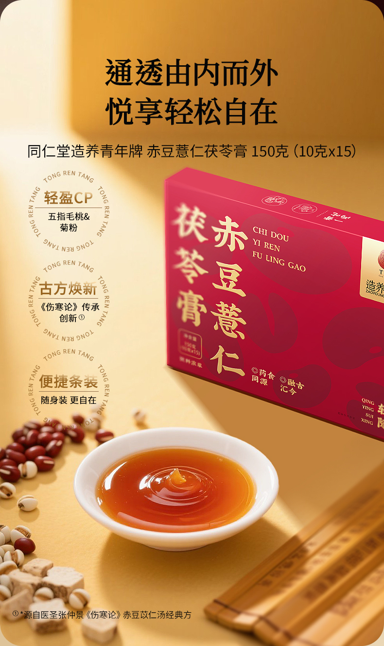 【正宗同仁堂品牌】北京同仁堂 造养青年 赤豆薏仁茯苓膏 150克(10克×15) 匠心熬制 小巧便携SY