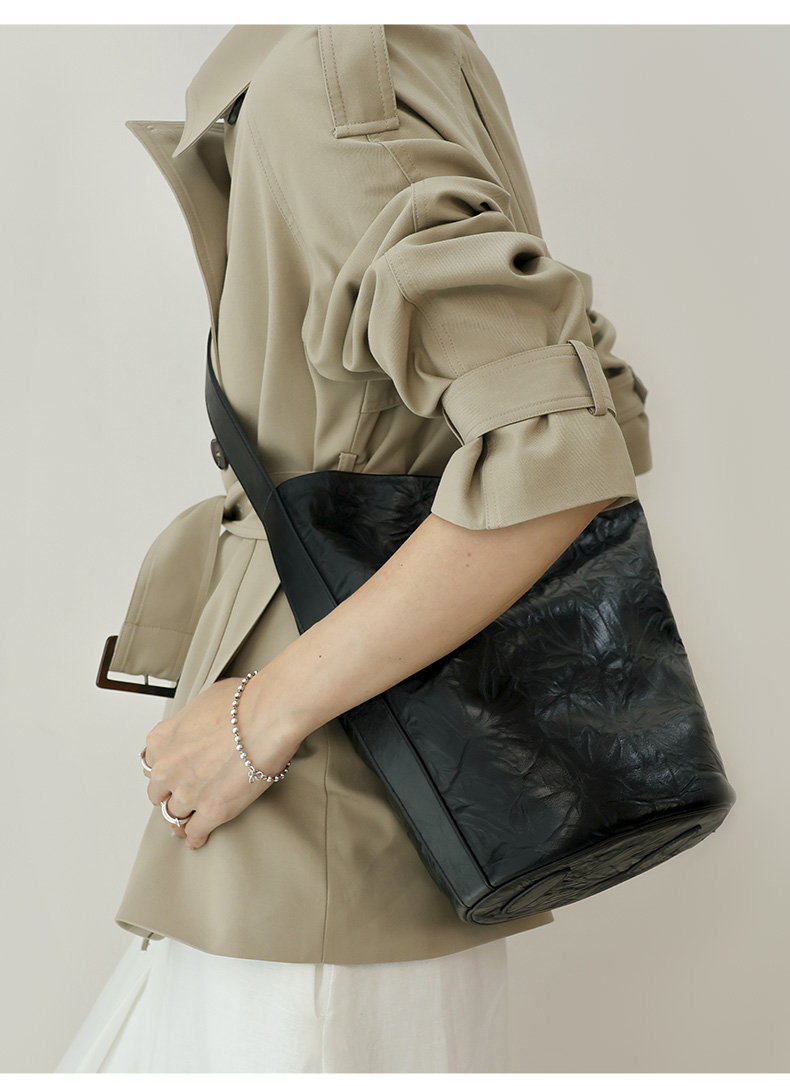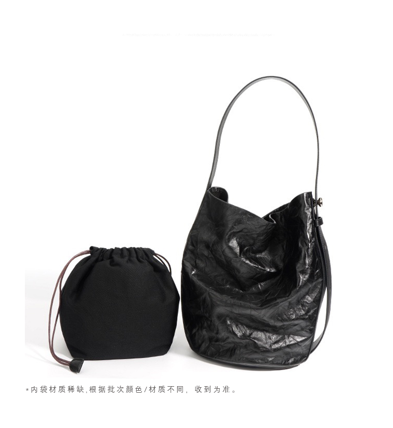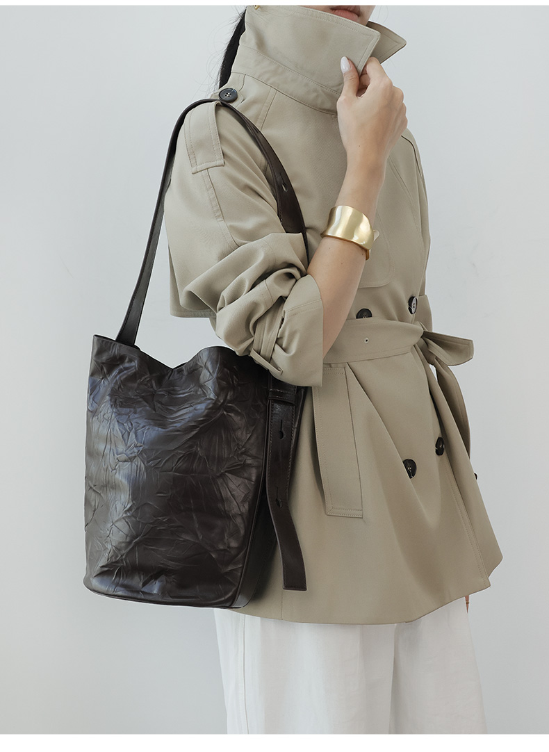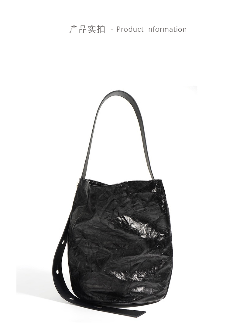 登白DENGBAI 头层手抓纹水桶包手抓纹褶皱水桶包头层牛皮1081