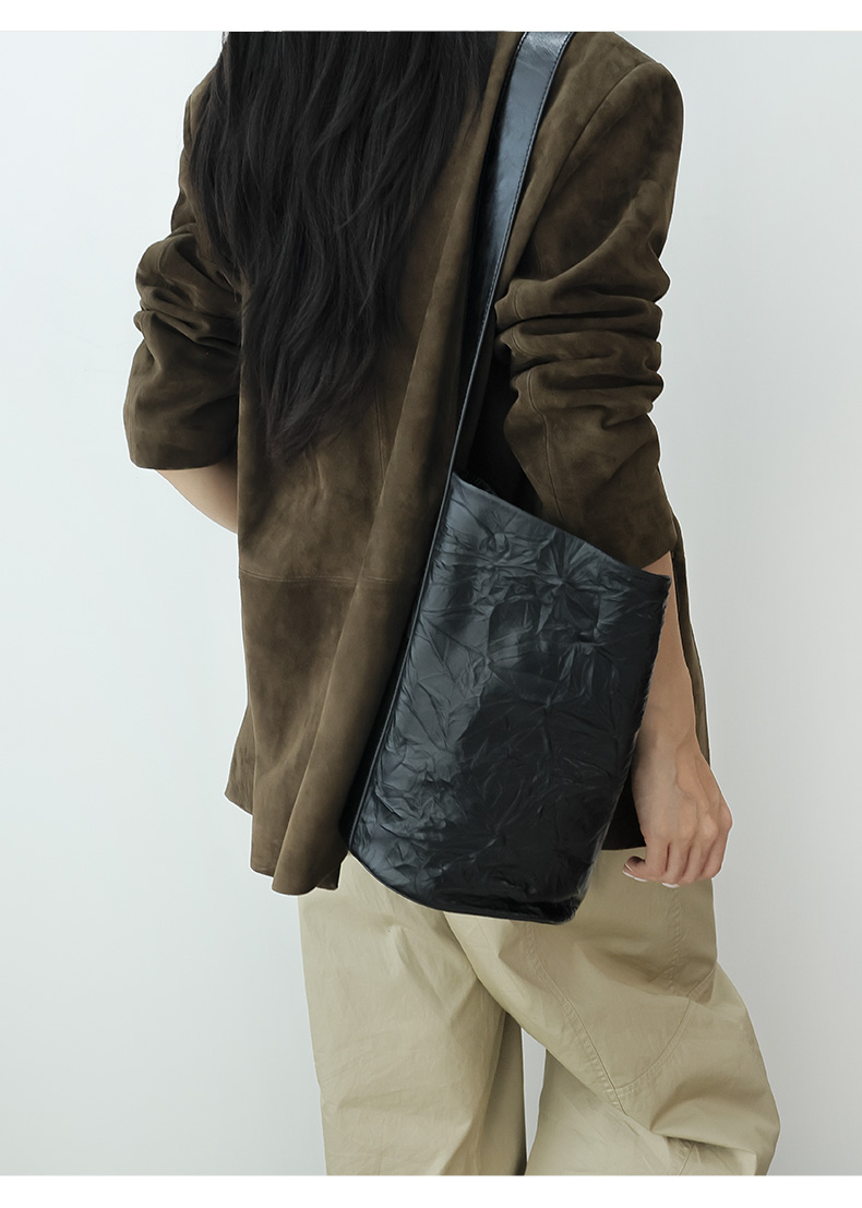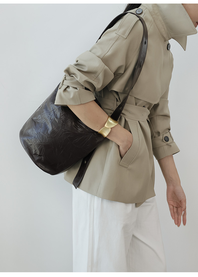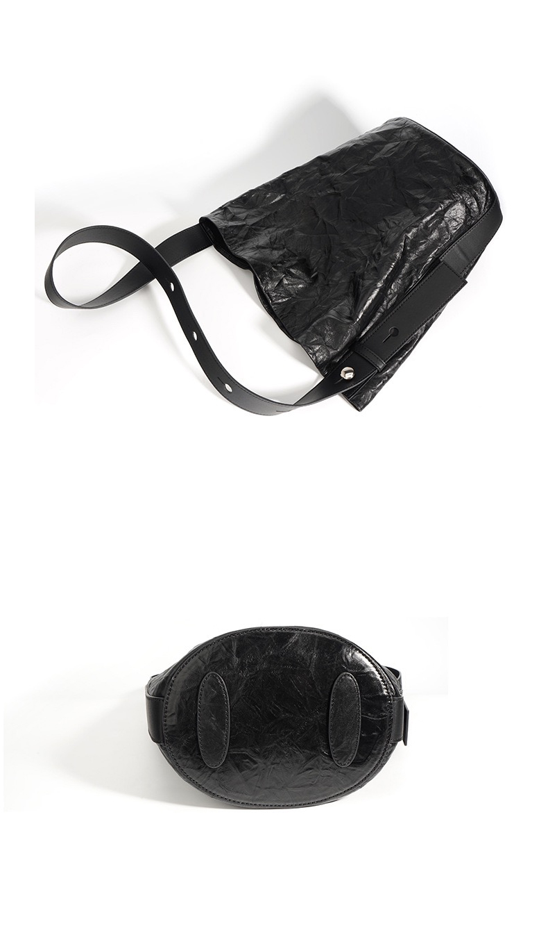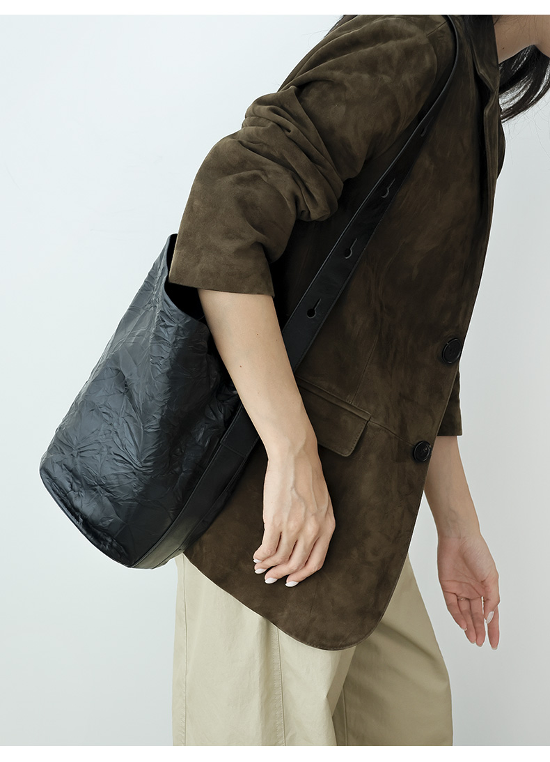 登白DENGBAI 头层手抓纹水桶包手抓纹褶皱水桶包头层牛皮1081