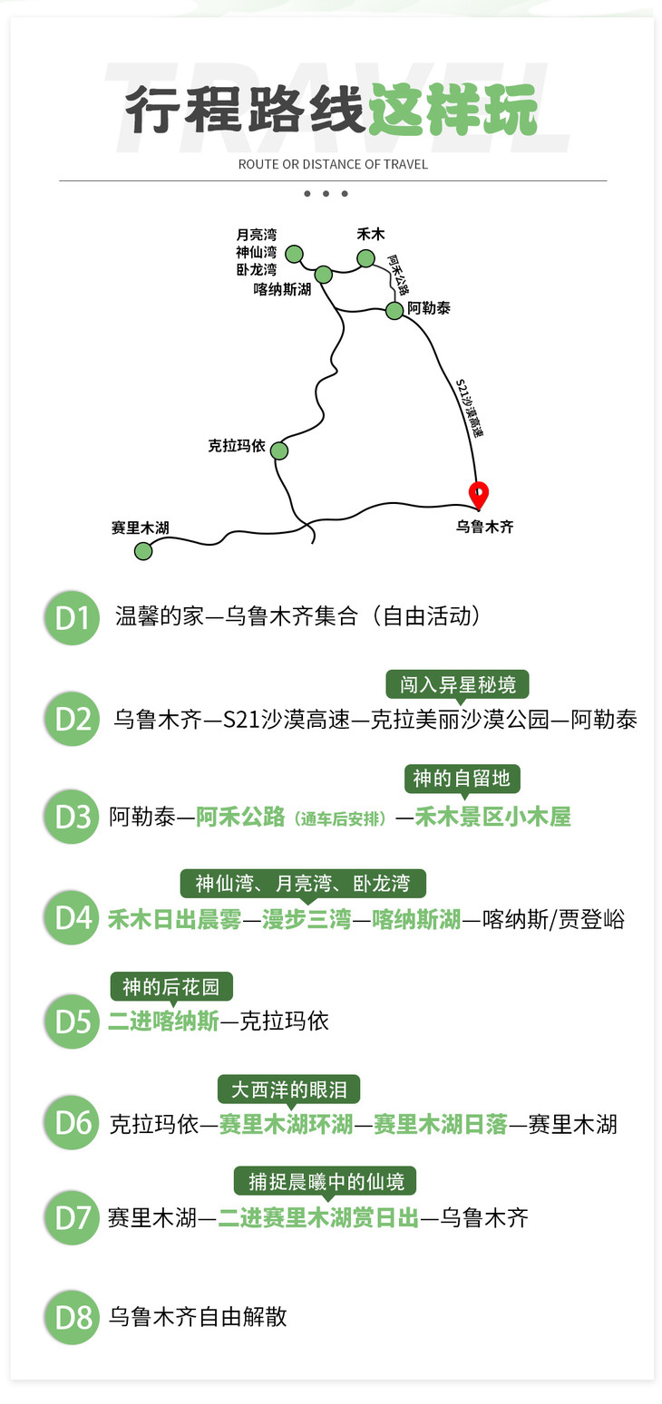 其中4晚携程四钻酒店,2晚景区住宿,1晚贾登峪或喀纳斯住宿。