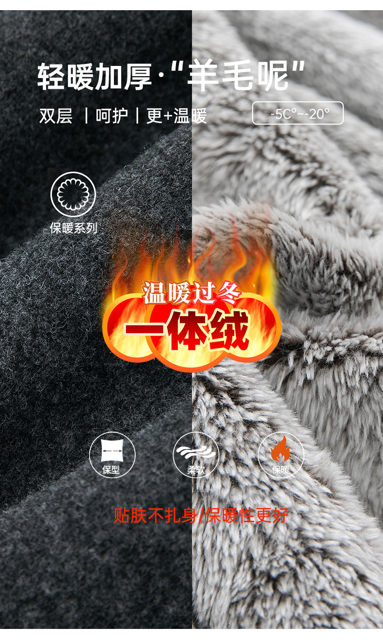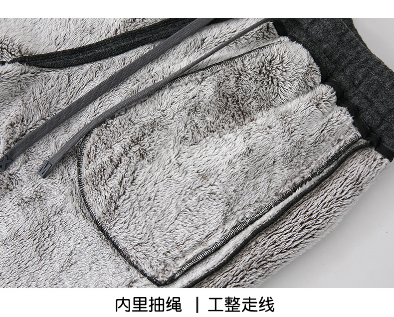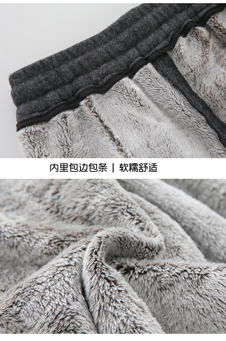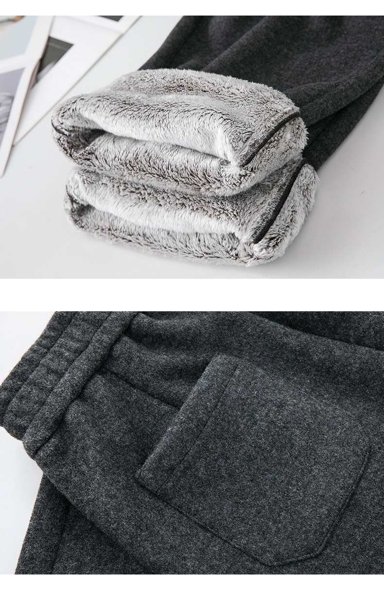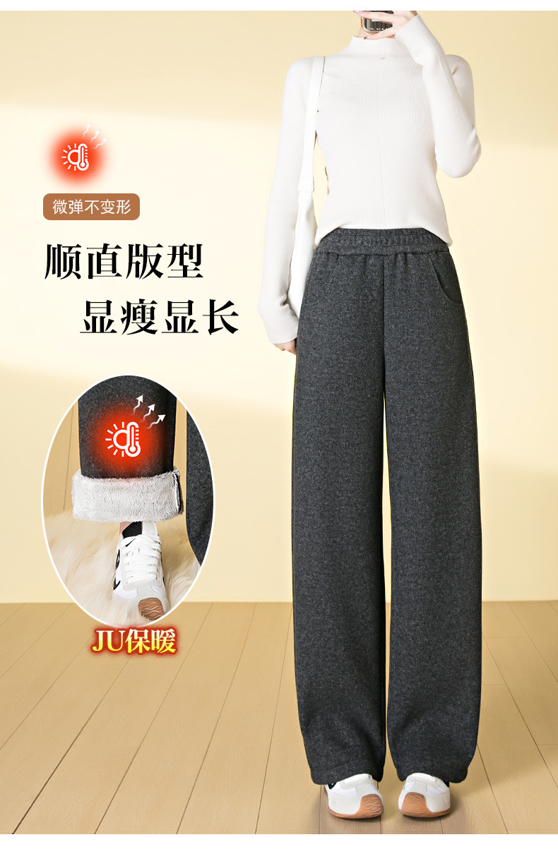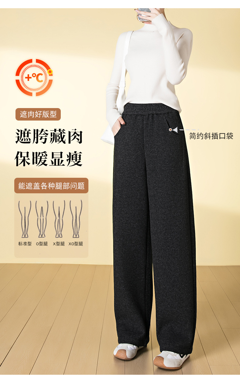 HSS 3091加绒加厚灰色雪花绒弯刀裤松紧腰保暖羊毛呢阔腿裤
