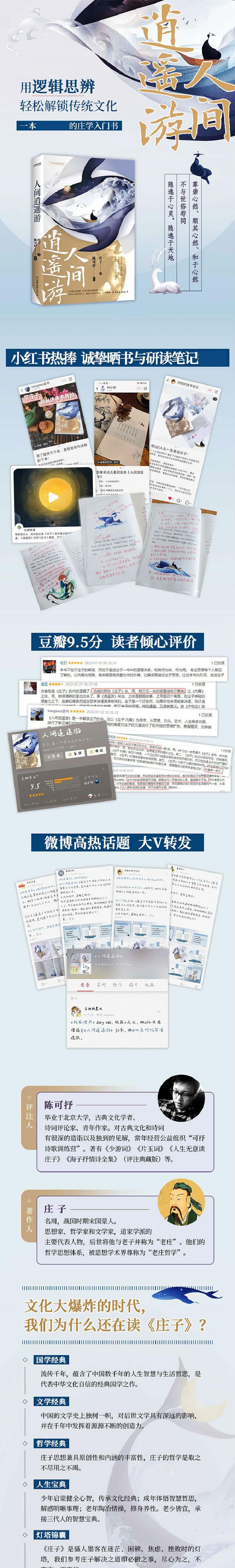 《人间逍遥游》以《庄子·内篇》为底本,北大青年作家、古典文学学者陈可抒从思想、文化、艺术、人生等多方面,进行了旁征博引式的注释与解读,有深度、有角度地对庄子的文章进行了现代性的思维扩充,文笔流畅、意蕴精深、文辞斐然、精义迭出。