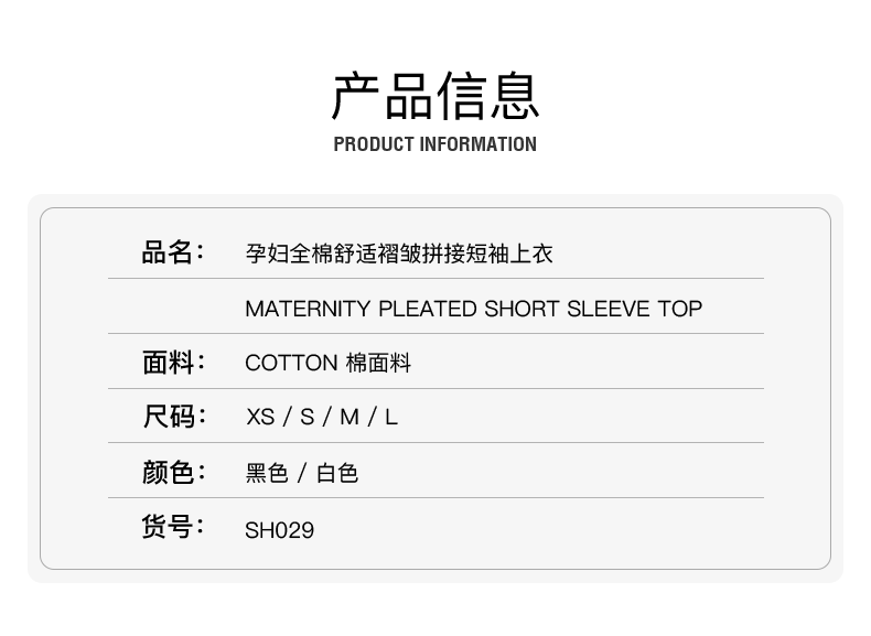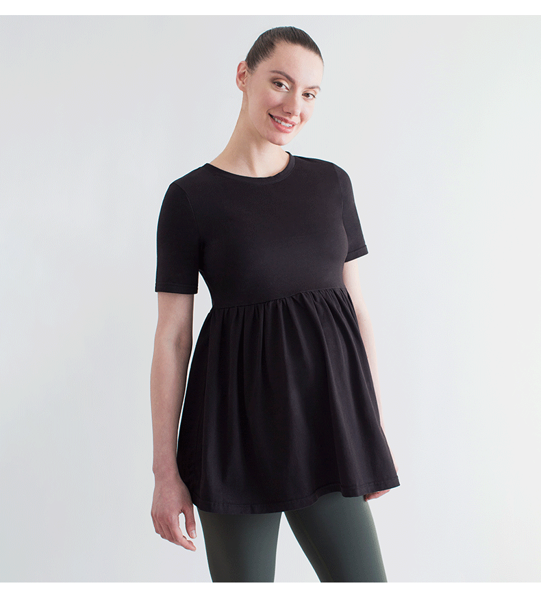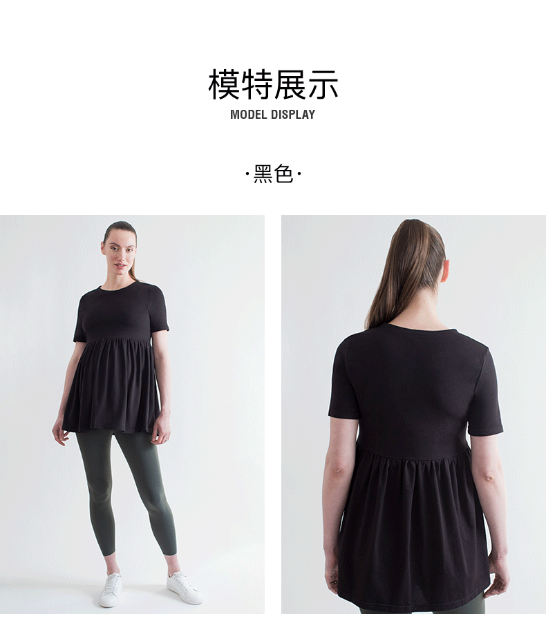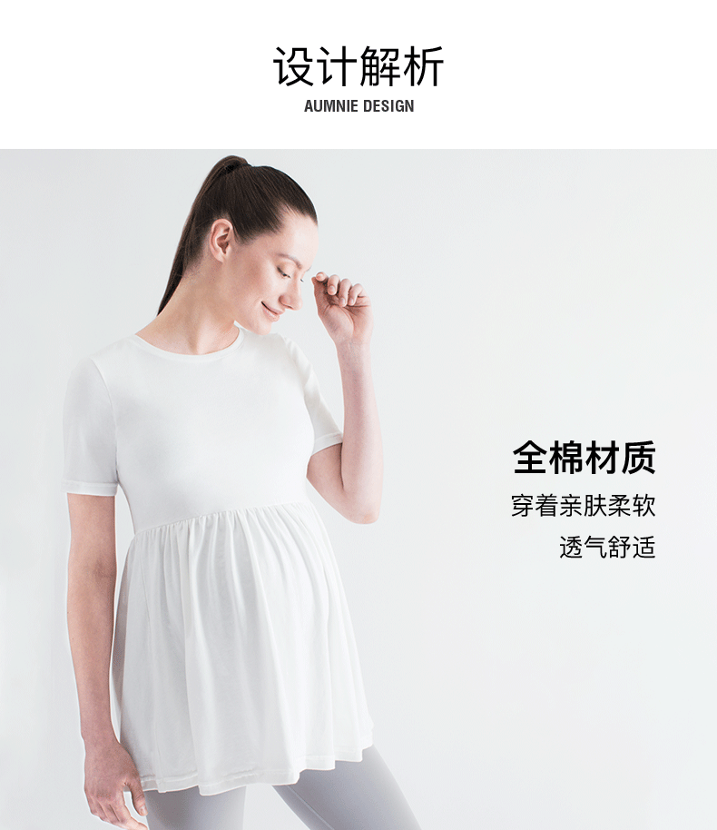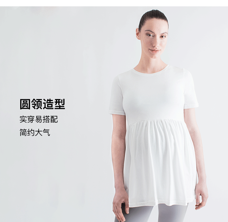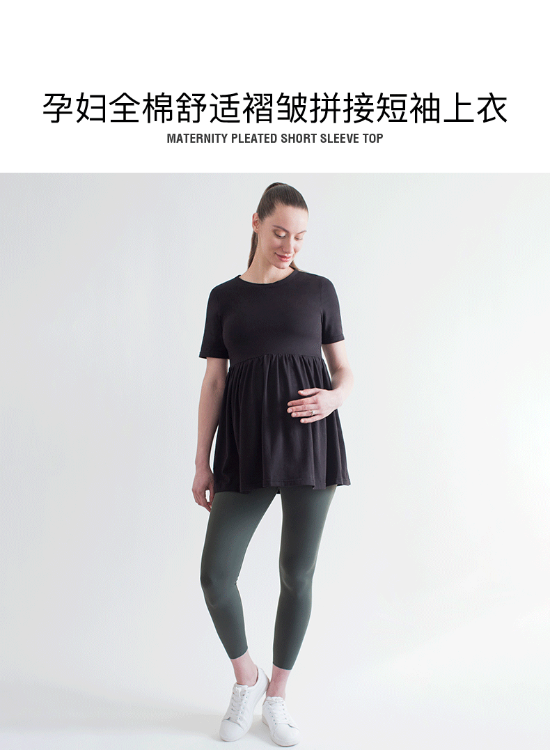 孕妇全棉舒适褶皱拼接短袖上衣 Maternity Pleated Short Sleeve Top