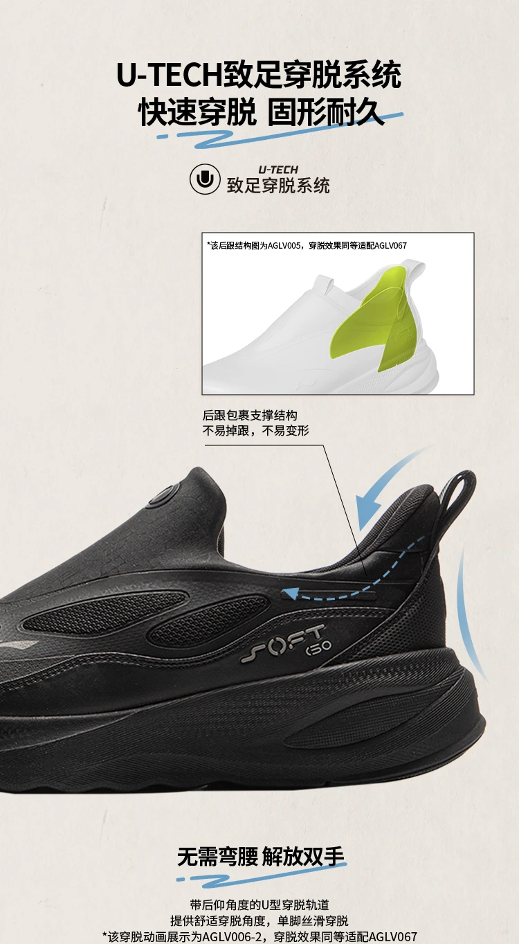 李宁SOFT GO 2 WNTR男子防泼水柔软舒适潮流休闲鞋AGLV067
