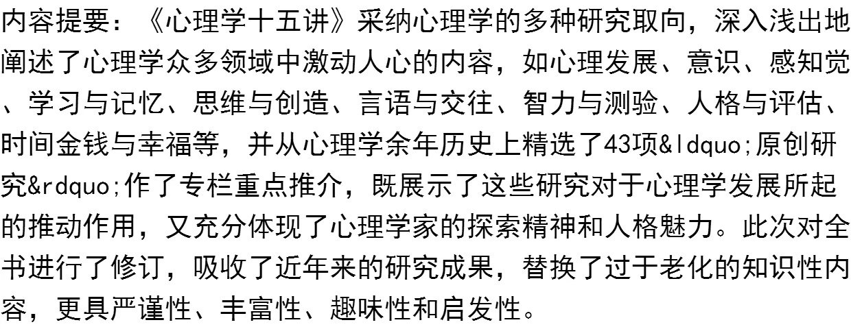 《心理学十五讲(第二版)》定价:59元