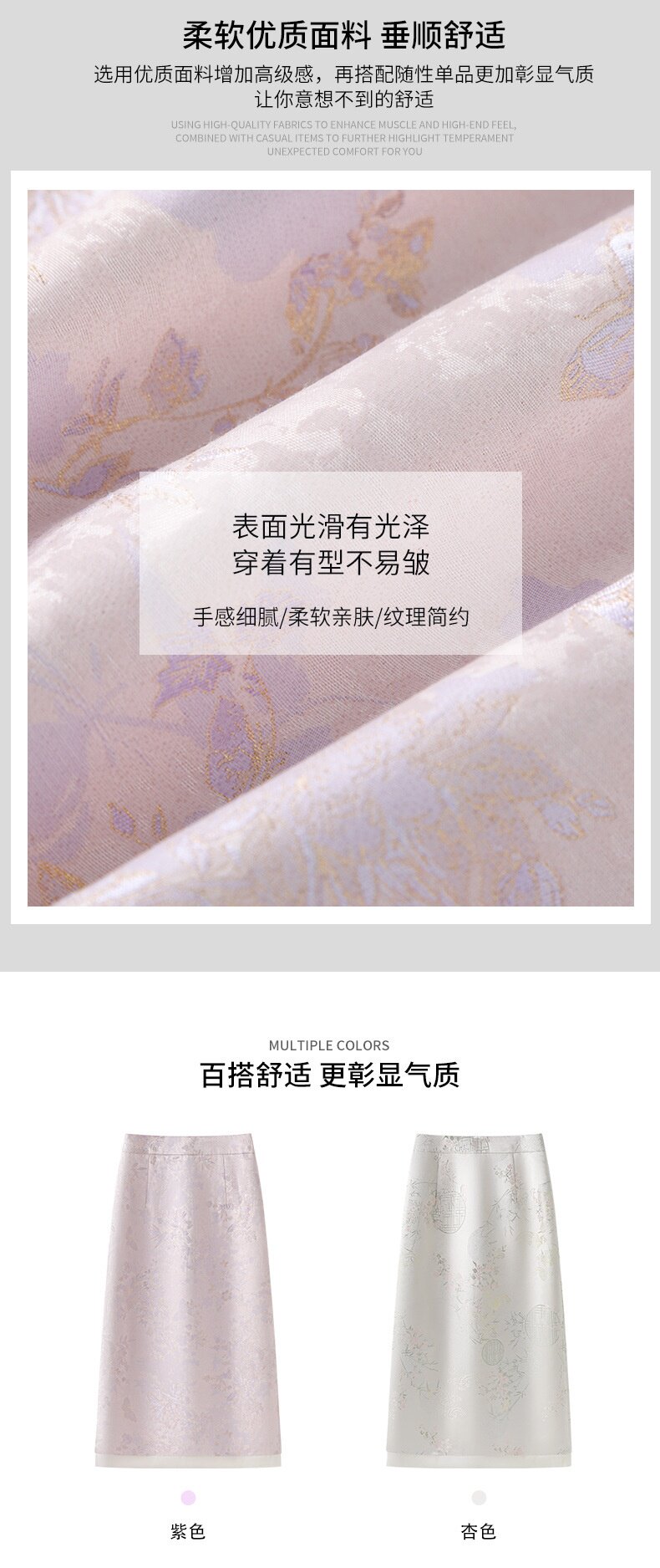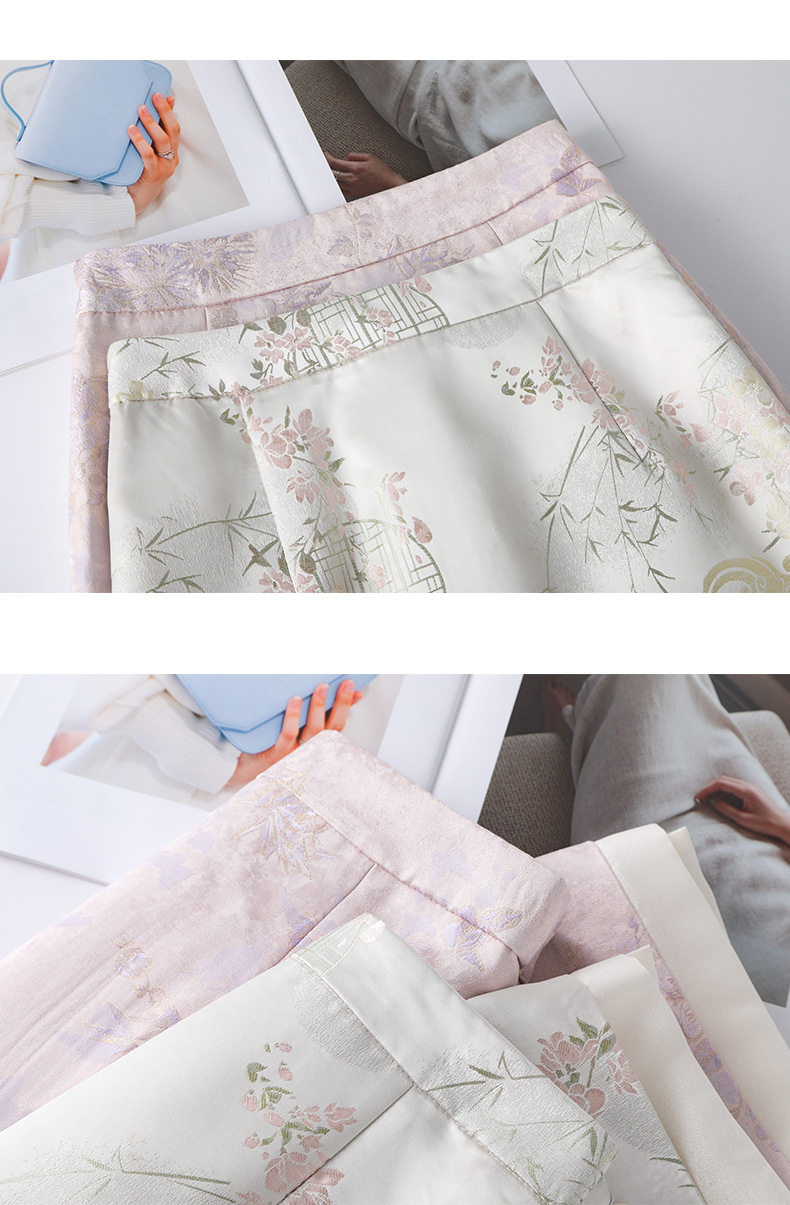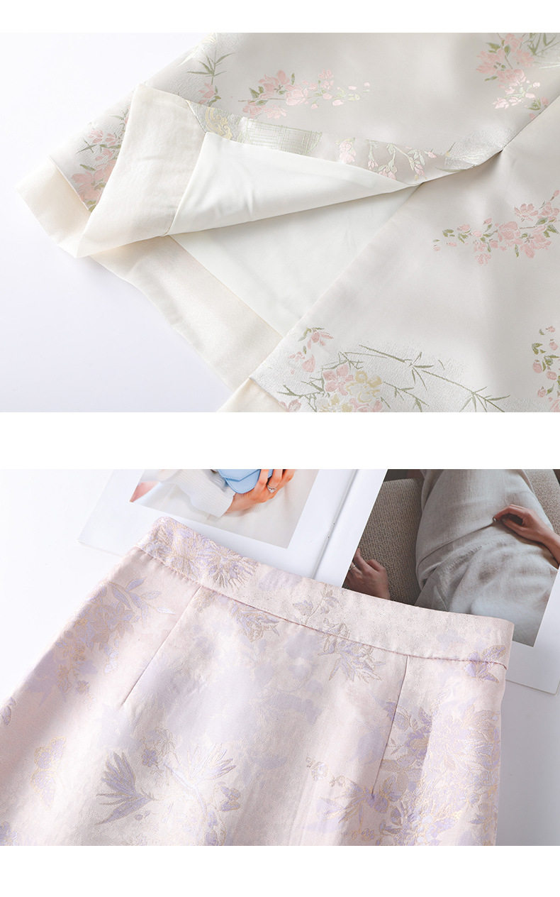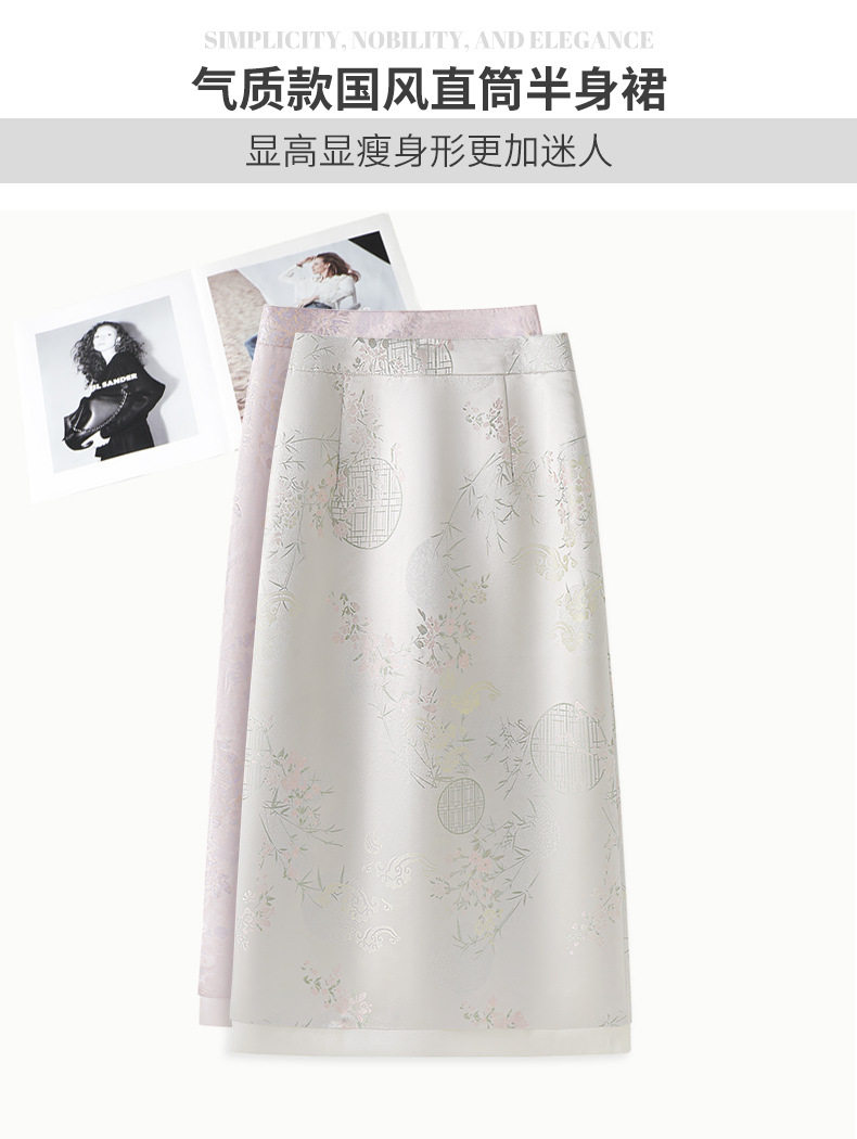 「自」全新升级【铂金会员146/天猫199/差价53】(03208)洛诗琳新中式缎面半身裙女2026新款高腰国风提花直筒A字裙