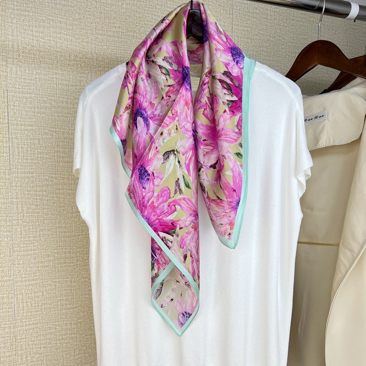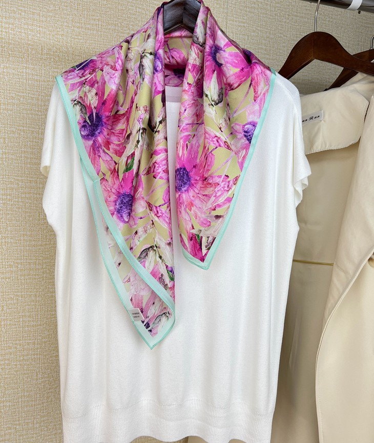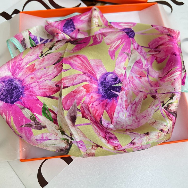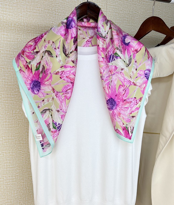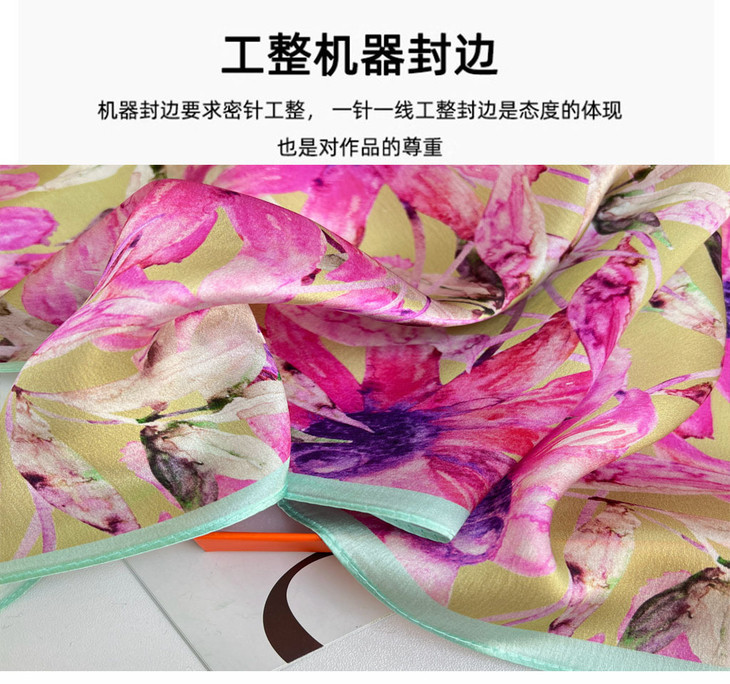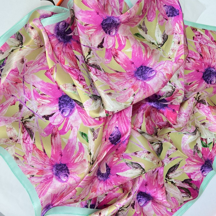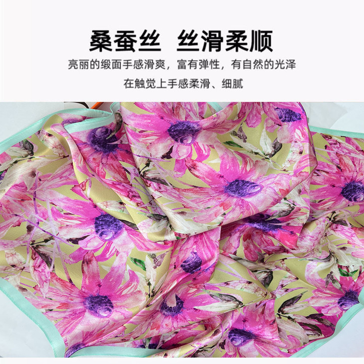 ZL- ZS2021122413 成都太古里法式小众设计真丝碎花丝巾拼接撞色桑蚕丝70方巾