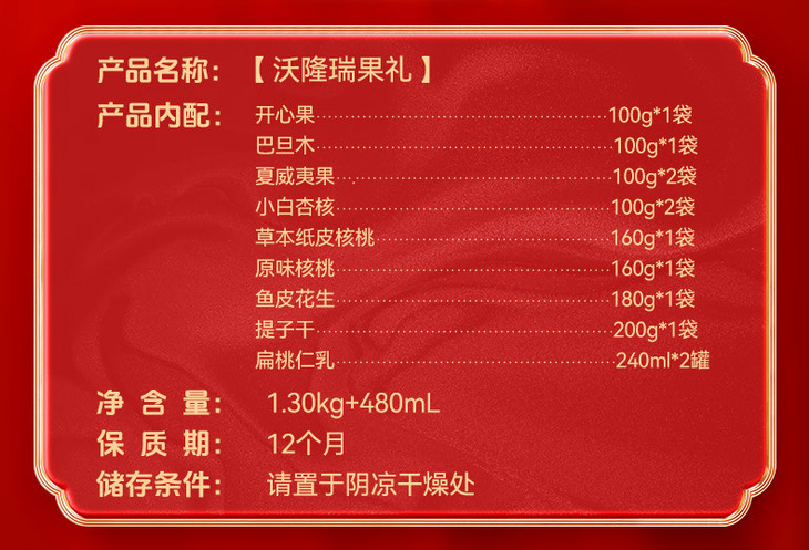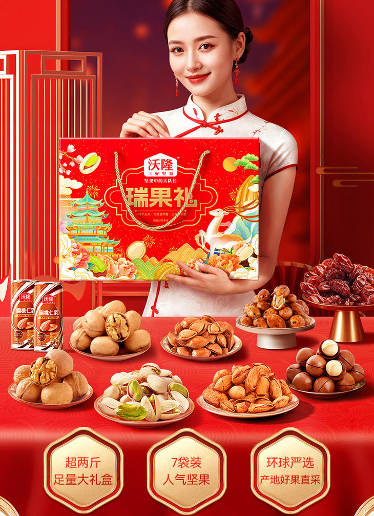 沃隆 瑞果礼1780g 混合坚果零食装开心果高档整箱年货礼盒