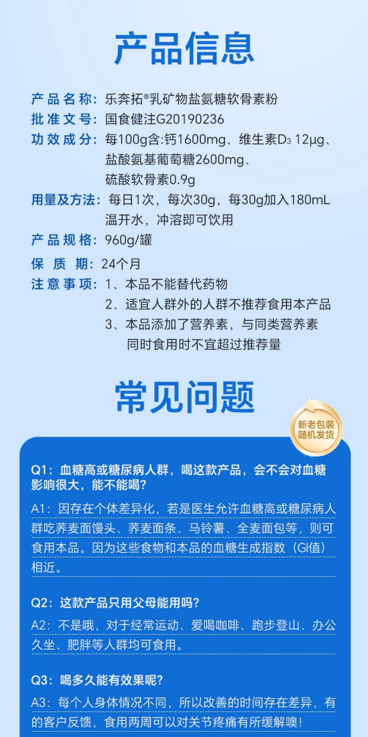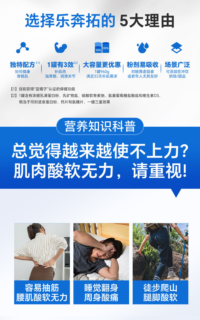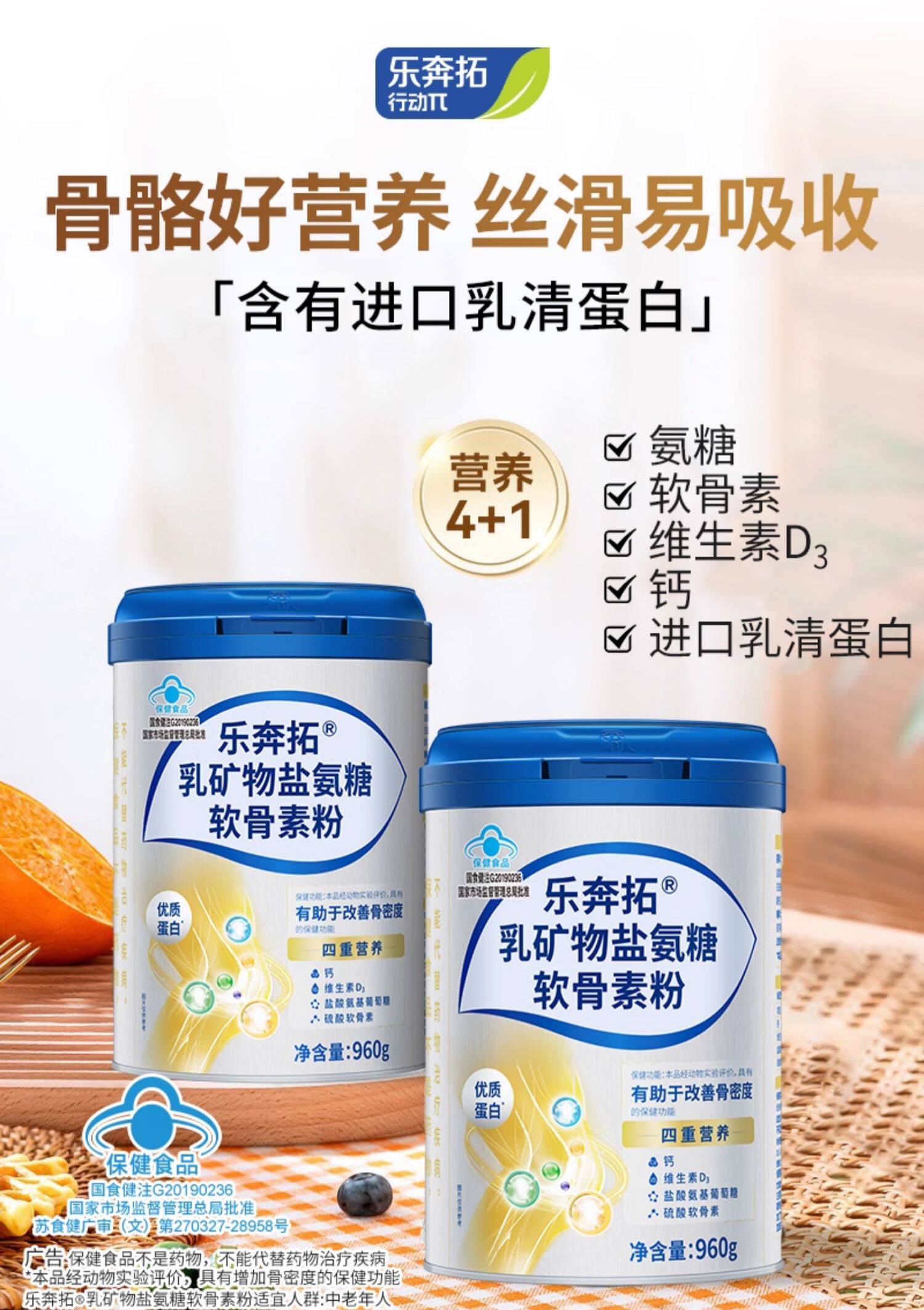 『铂金升级版』乐奔拓牌乳矿物盐氨糖软骨素粉960g中老年增强骨密度补钙补软骨护关节