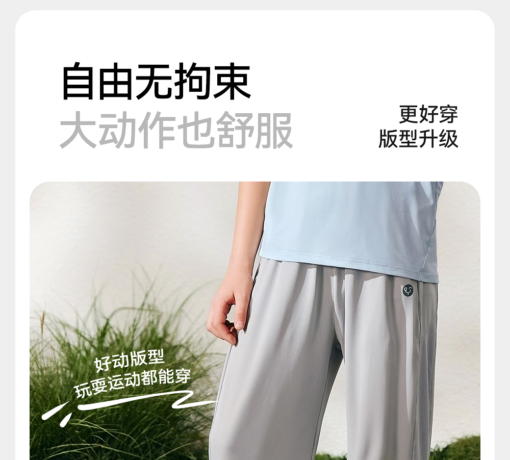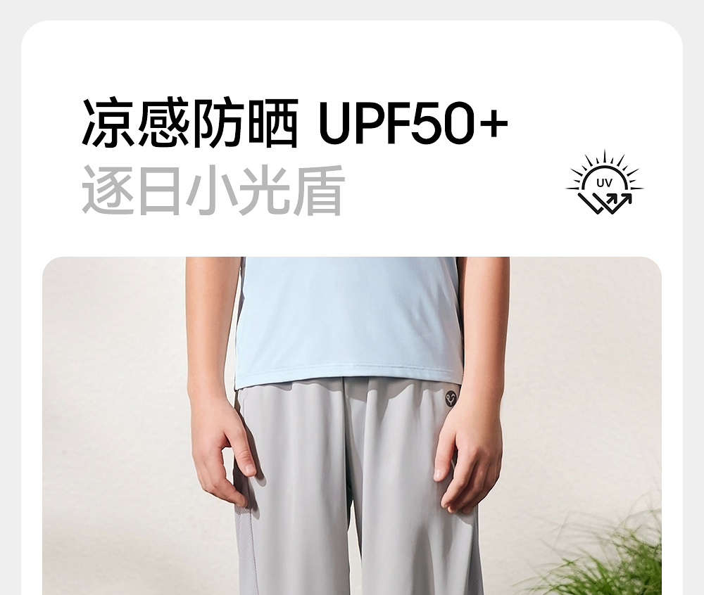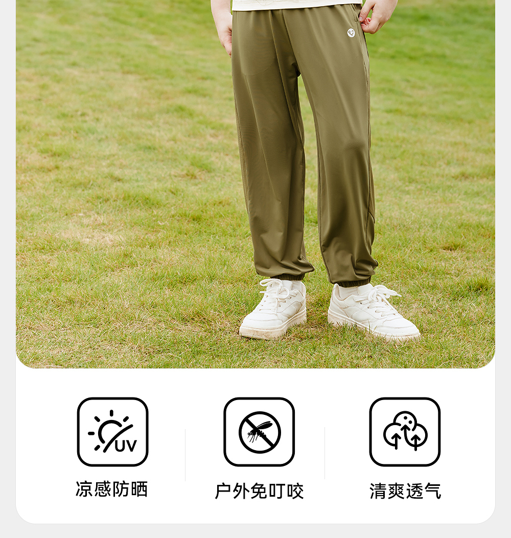 英氏儿童裤子夏季防晒凉感长裤透气休闲裤中大童束脚裤男女童长裤