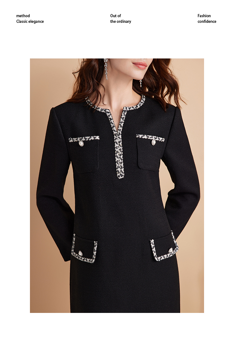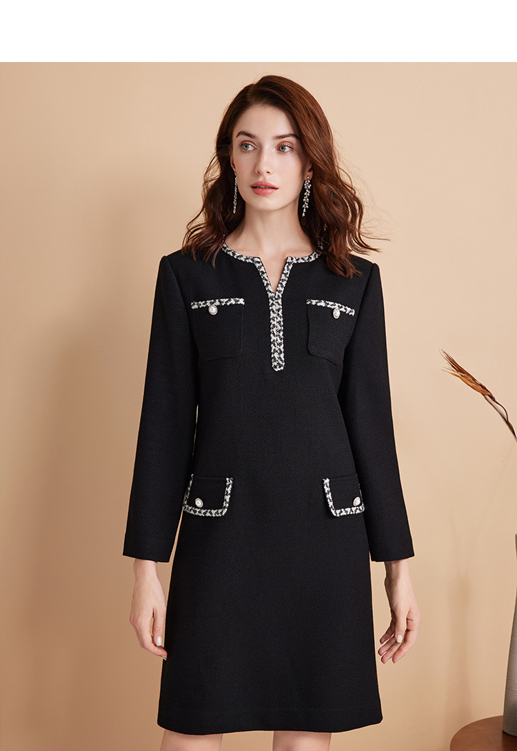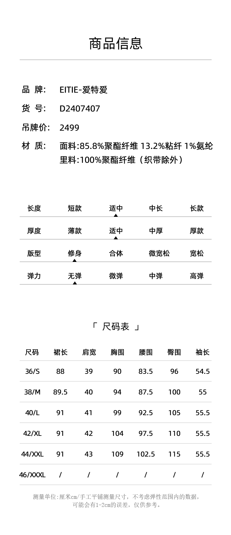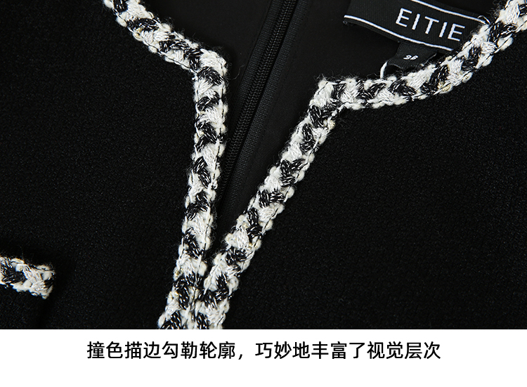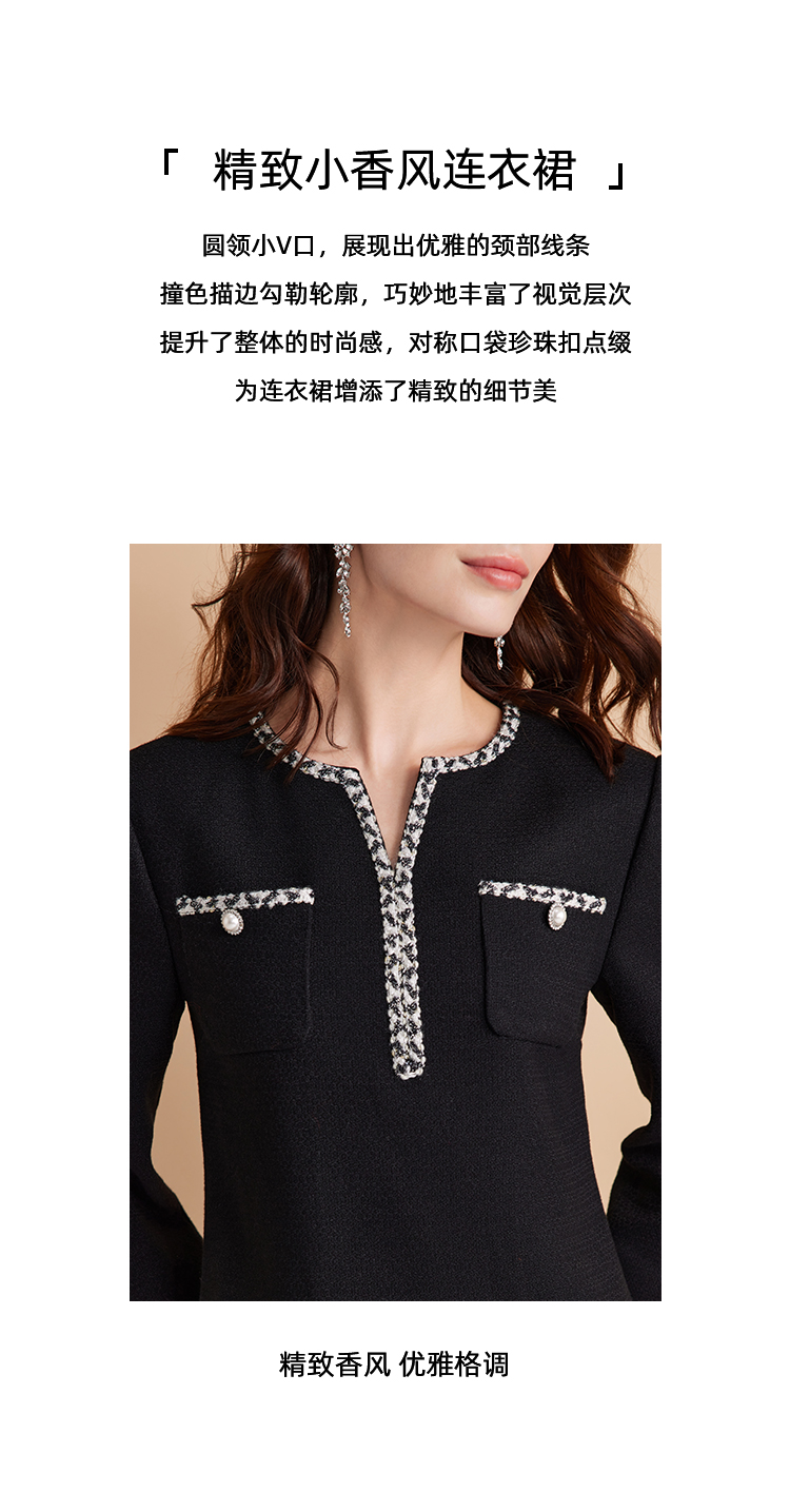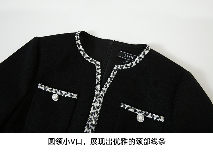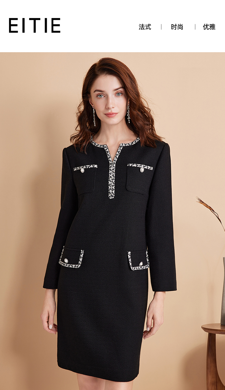EITIE爱特爱冬季新款气质精致优雅V领小香风显瘦通勤连衣裙D2407407