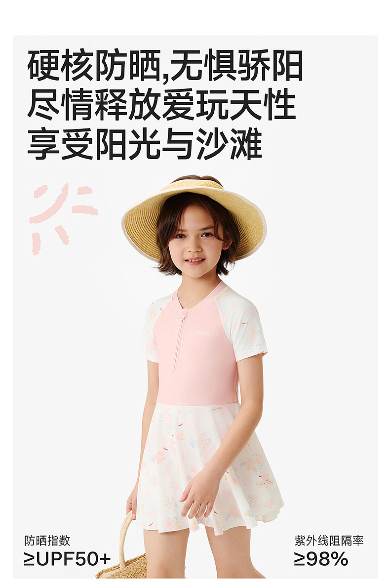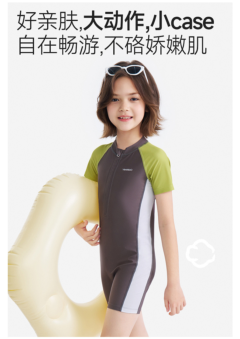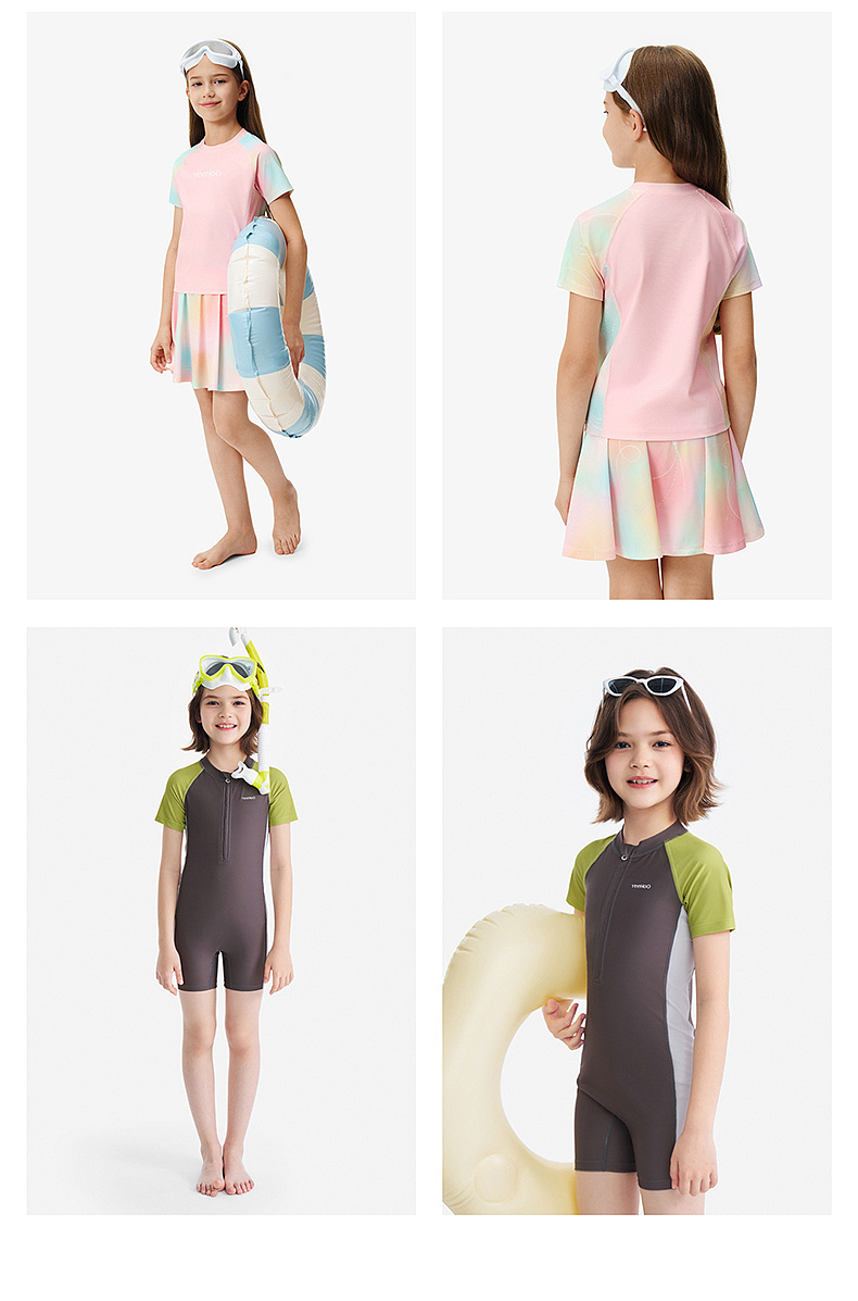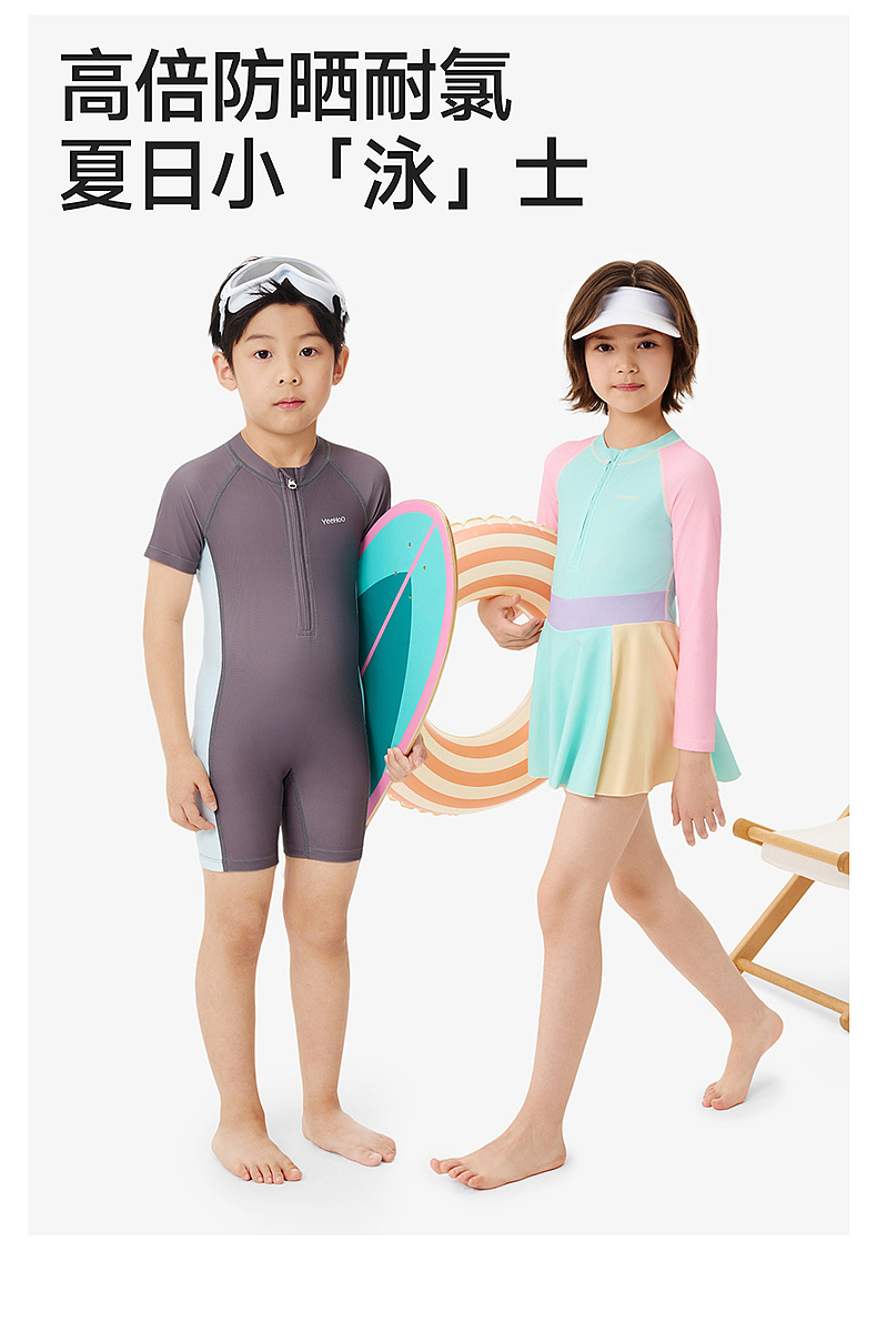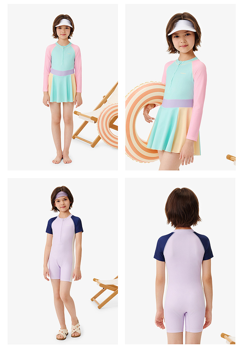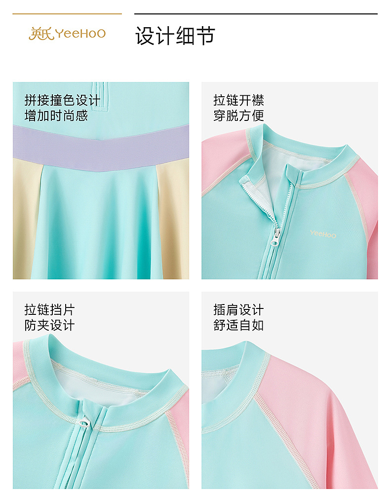英氏儿童专业训练泳衣防晒防紫外线女童长袖分体游泳温泉泳装