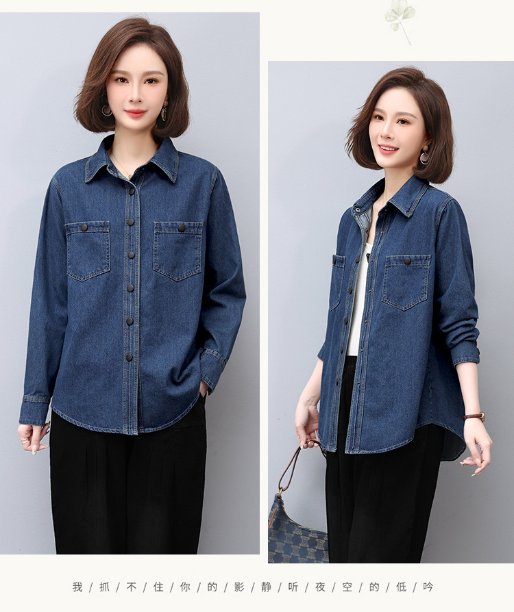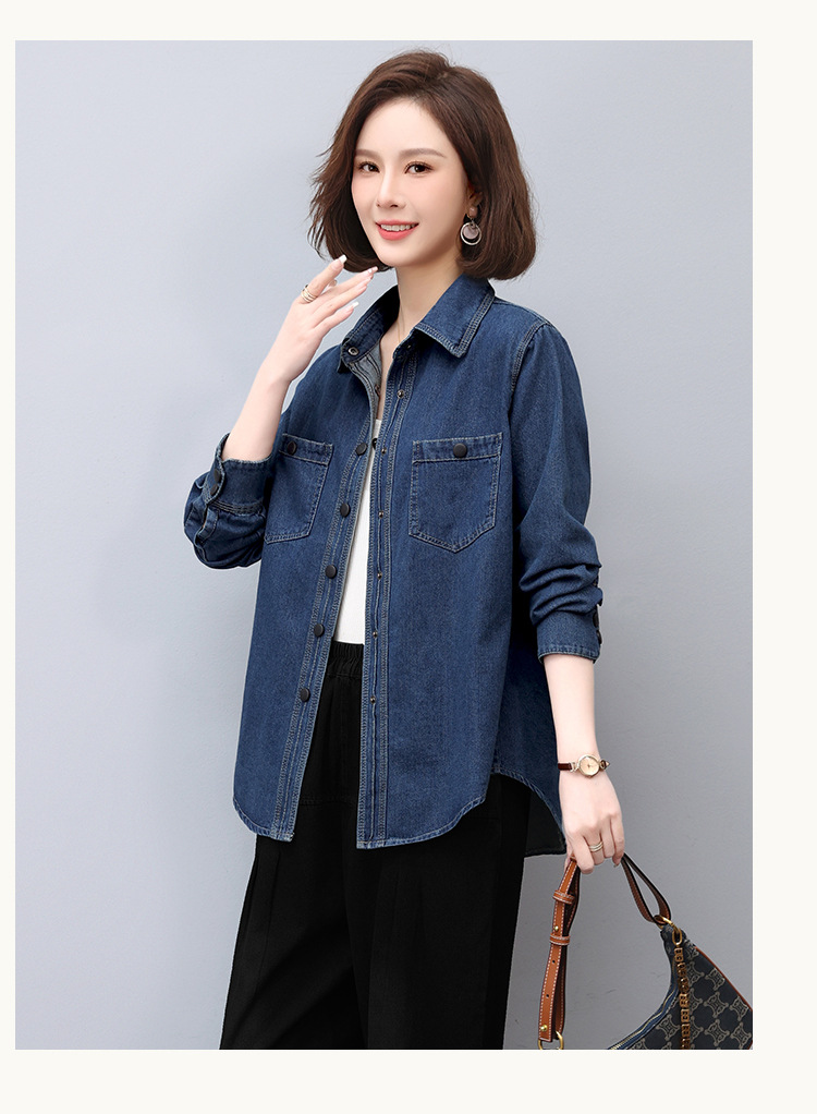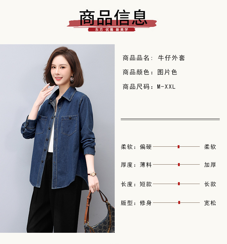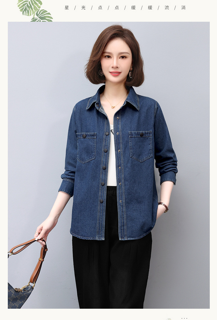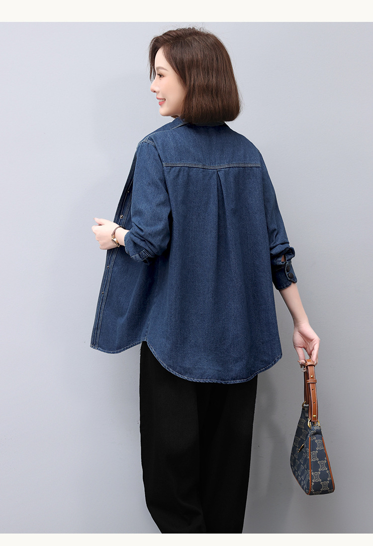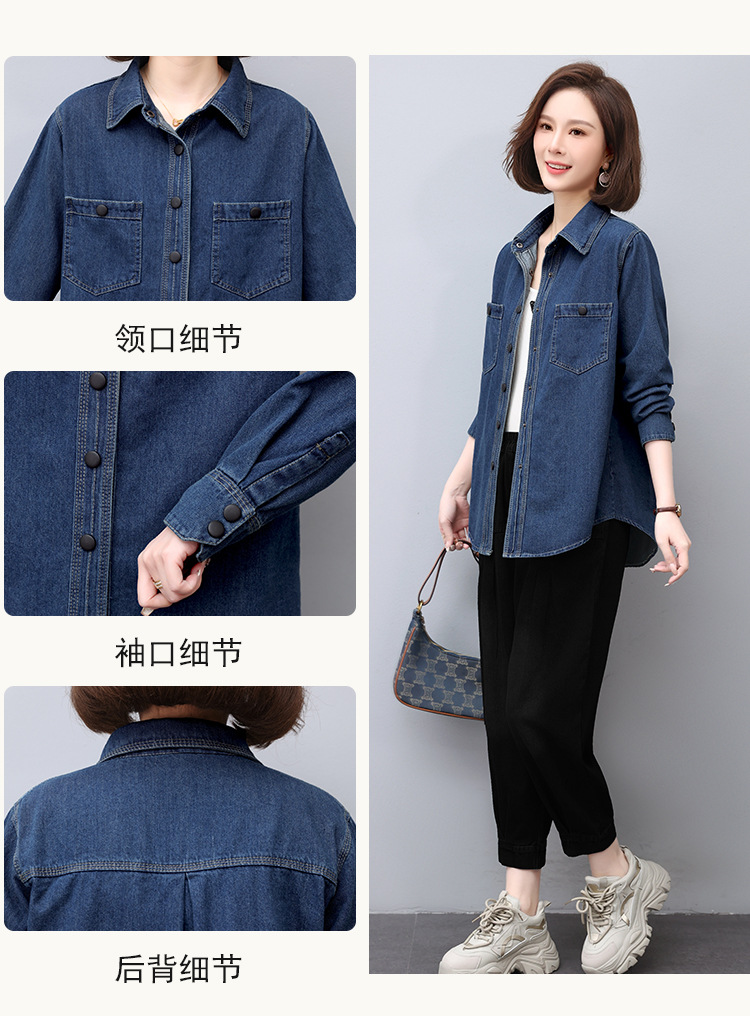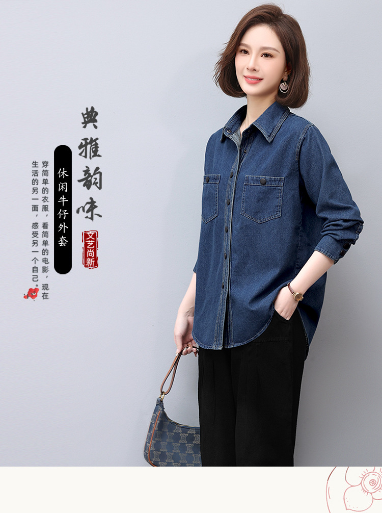 蓝色牛仔外套春秋季上新拼接立体妈妈装舒适潮流开衫上衣HR-WS13219