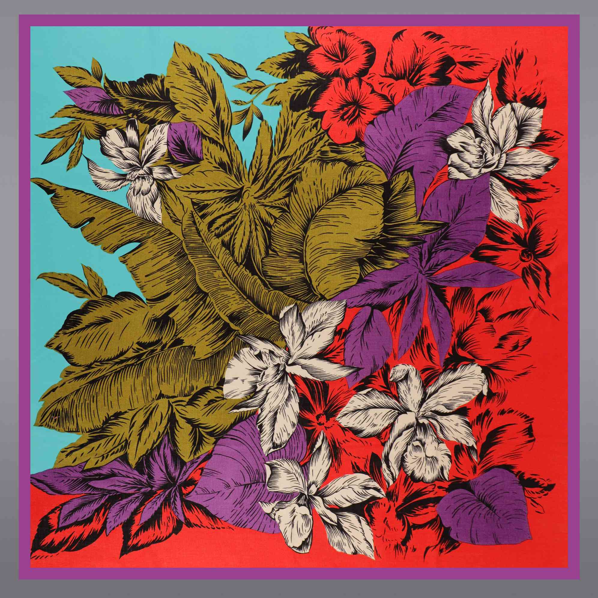 桑蚕丝撞色几何空间时尚丝巾(出口韩国余款)