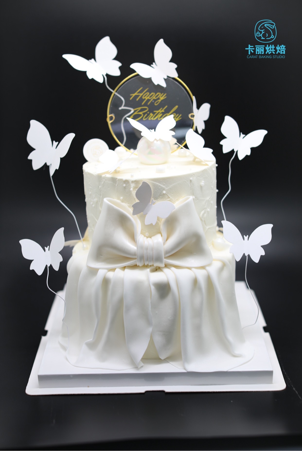 女神蝴蝶结翻糖双层蛋糕