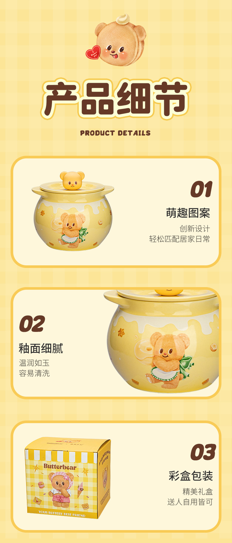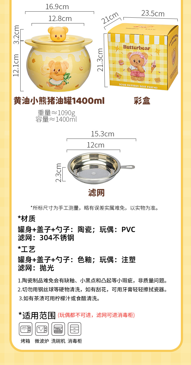 摩登主妇&黄油小熊猪油罐家用陶瓷耐高温辣椒油荤油专用罐子