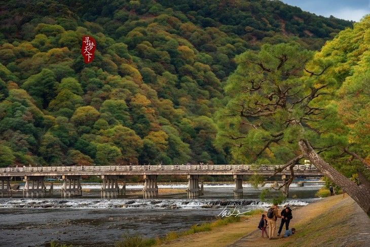 这座桥架设在隔开嵯峨野和嵐山的桂川上。最初由僧人道昌在承和年间(834 -848年)架设,后由角仓了以在现今的位置重建。目前使用的桥建于昭和9年(1934年)6月。亀山上皇在桥上眺望夜空中移动的月亮,感叹道“如同无云的月亮穿行而过”,因此将这座桥命名为“渡月桥”。渡月桥是嵐山的代表性观光景点。
