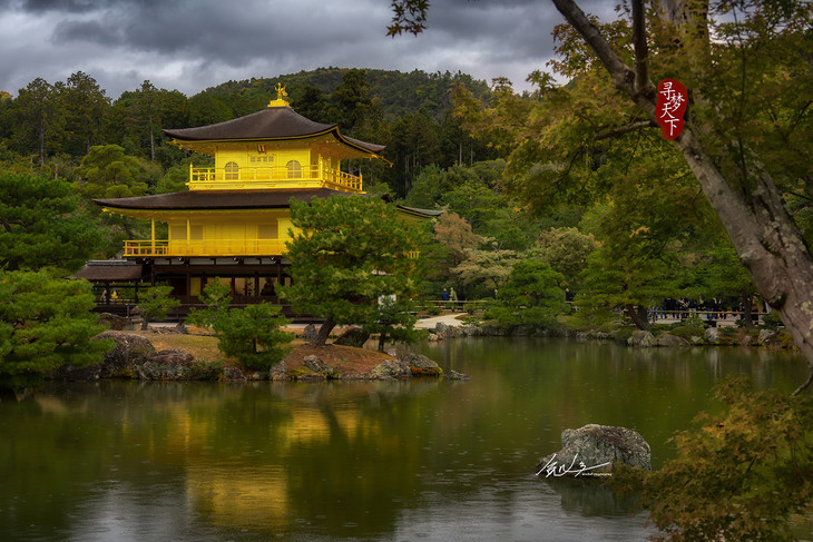 金阁寺,又名鹿苑寺,是日本京都著名的佛教寺庙,以其精美的金箔外墙和典的建筑风格而闻名。寺庙坐落于宁静的池塘边,建筑倒影在水中,景色如画,四季皆有不同的美景;